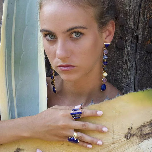 Anillo Polar con lapislázuli, cuarzo azul y cuarzo citrino