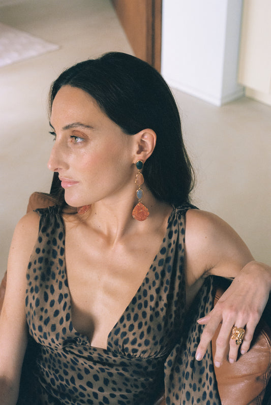 Colgantes Bee con cuarzo rosa, cuarzo fumé y labradorita