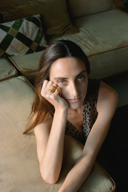 Anillo Bee con cuarzo rosa y cuarzo fumé