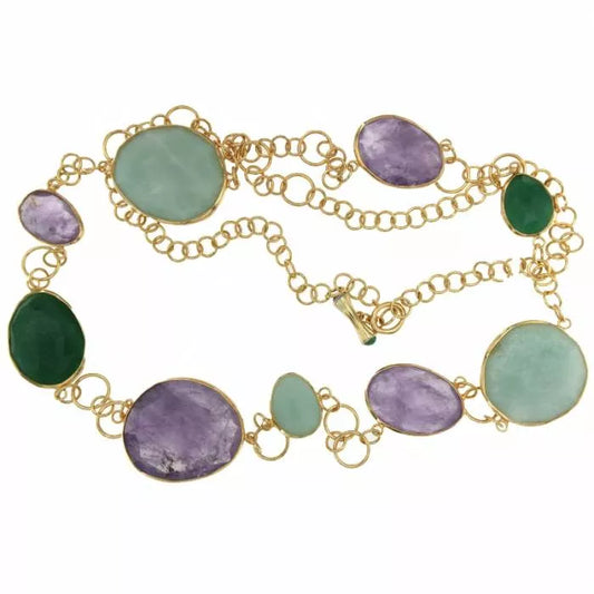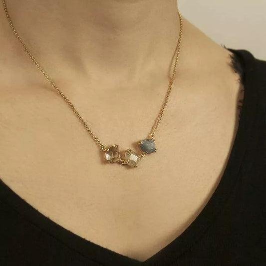 Collar Tricandy con cuarzo rutilado, cuarzo azul y amatista verde