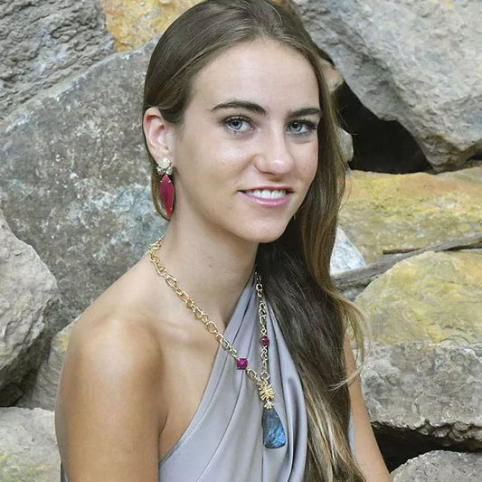 Collar Tricandy con cuarzo azul y ágata frambuesa