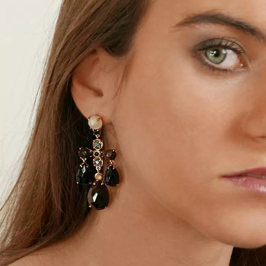 Pendientes Géminis con cuarzo fumé y piedraluna