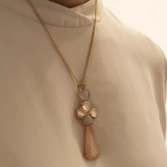 Maltese Cross Pendant with chalcedony and white and pink mother-of-pearl
