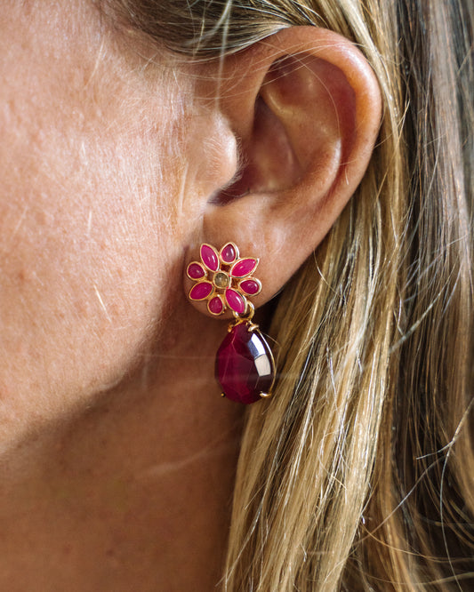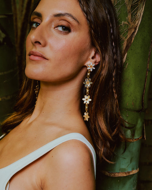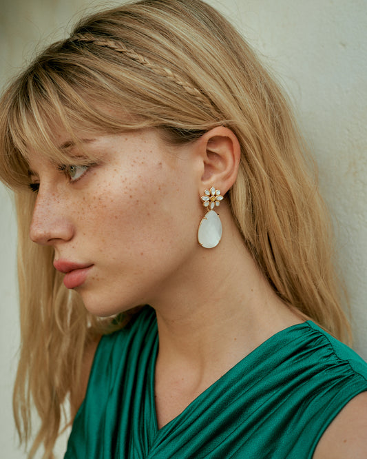 Brownea Earrings with black Mother of Pearl and Green Fluorite