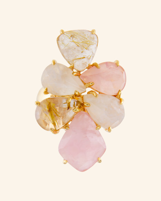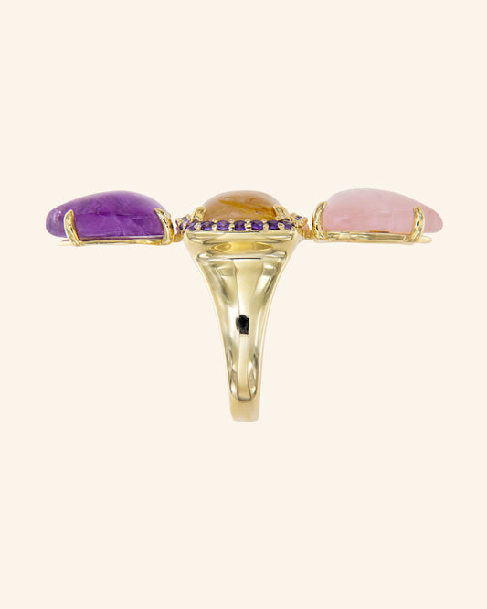 Suhail ring with amethyst, rose quartz and rutilated quartz