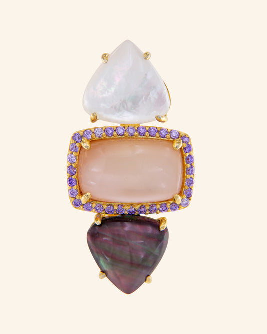 Suhail ring with tricolor mother-of-pearls and zircons