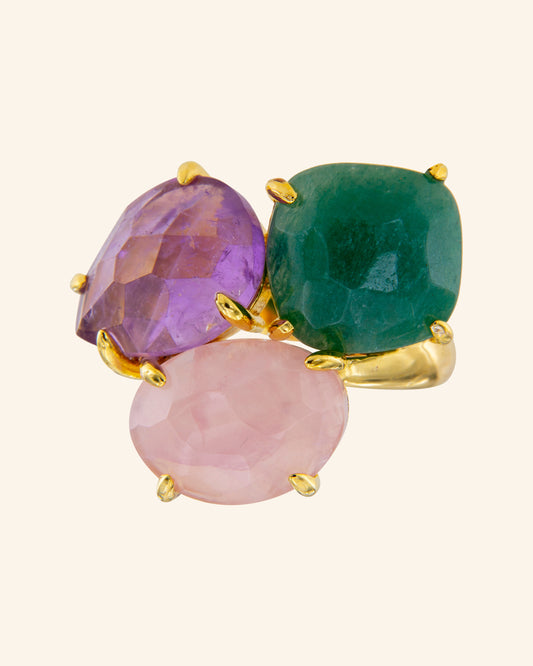 Kraz ring with rose quartz, amethyst and aventurine