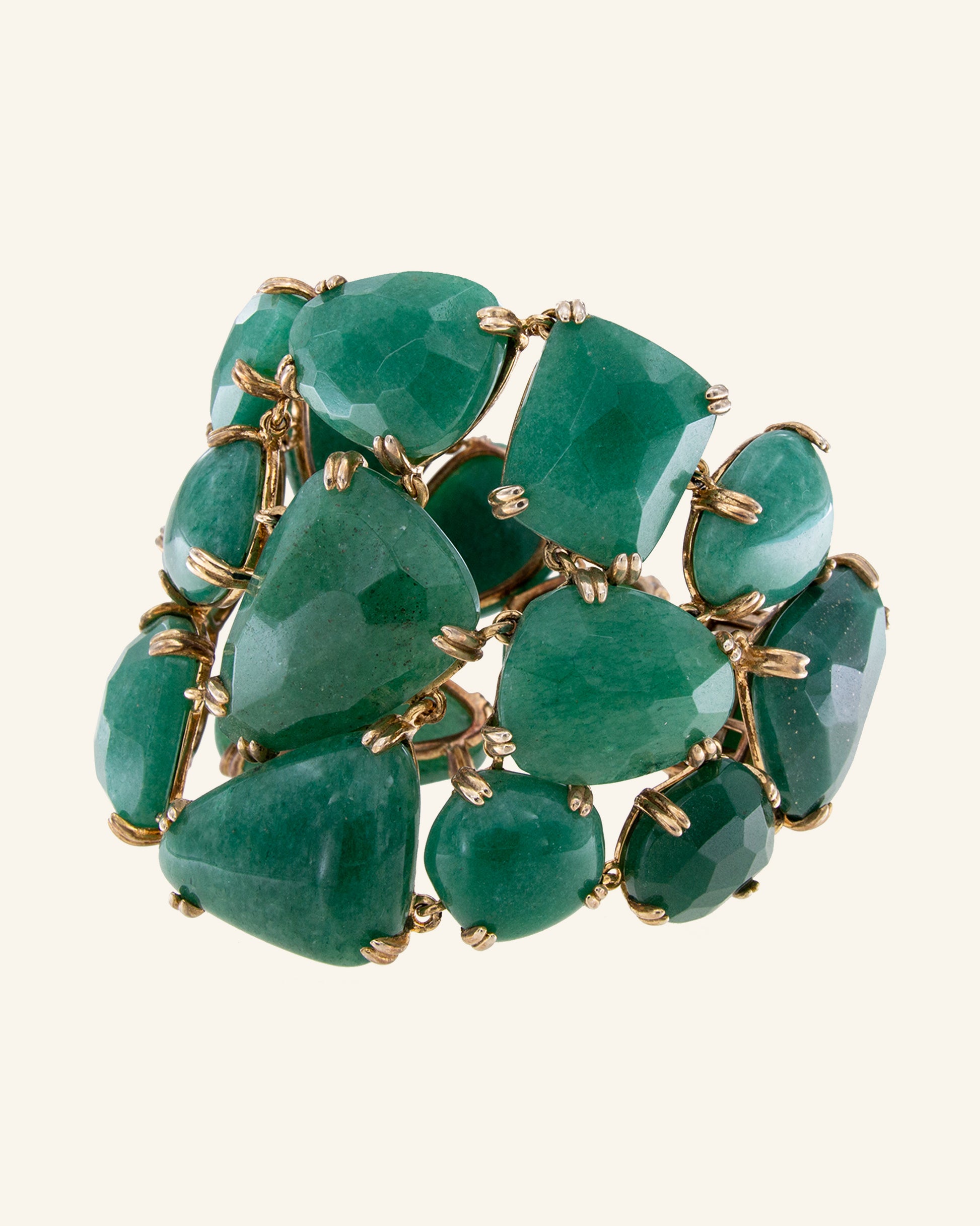 Bracelet in champagne gold and natural stones hand-carved in irregular shapes to create a unique design inspired by ancient Egypt and the god that gives the jewel its name. A bracelet that, with its deep colors, will accompany you to your most special occasions.