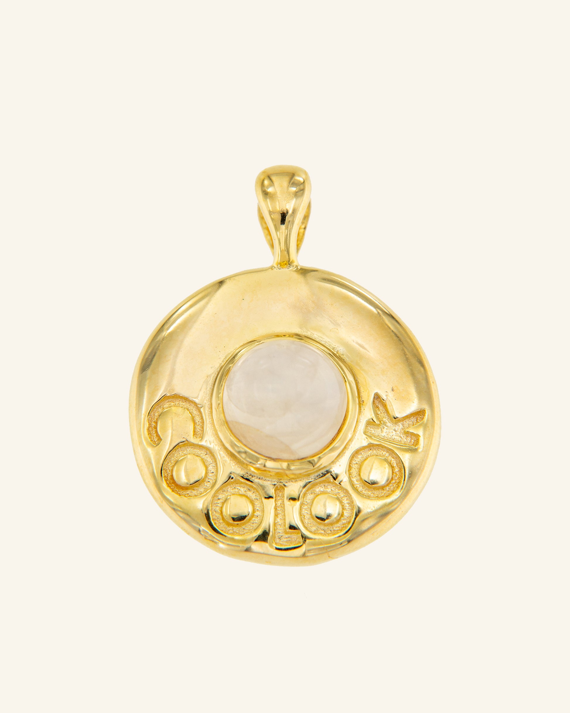Colgante en versión mini, en oro champán y piedra natural tallada a mano. Un básico Coolook combinable con cadenas corta y largas para que la firma te acompañe en tu día a día, dando ese toque de estilo y color natural que nos caracteriza.