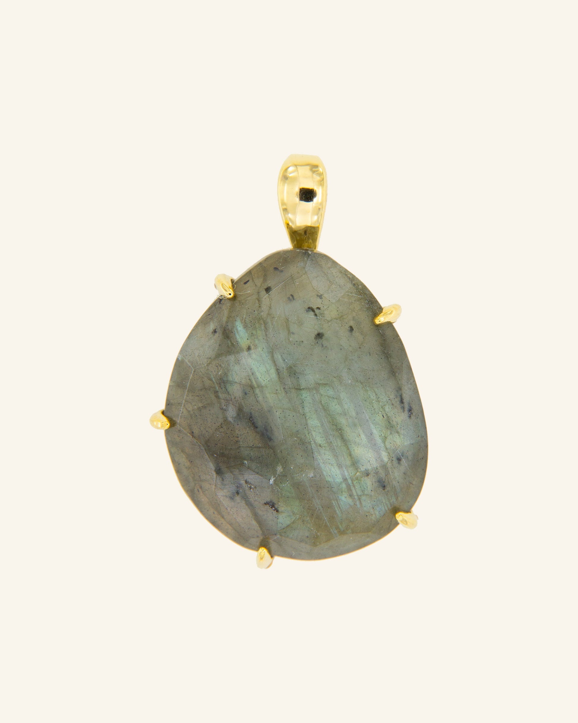 Pendant in champagne gold and hand-carved natural stone in the shape of a teardrop to bring light and color to your day-to-day looks. A simple and natural jewel perfect to combine with both a chain and our leather cords for a casual style.