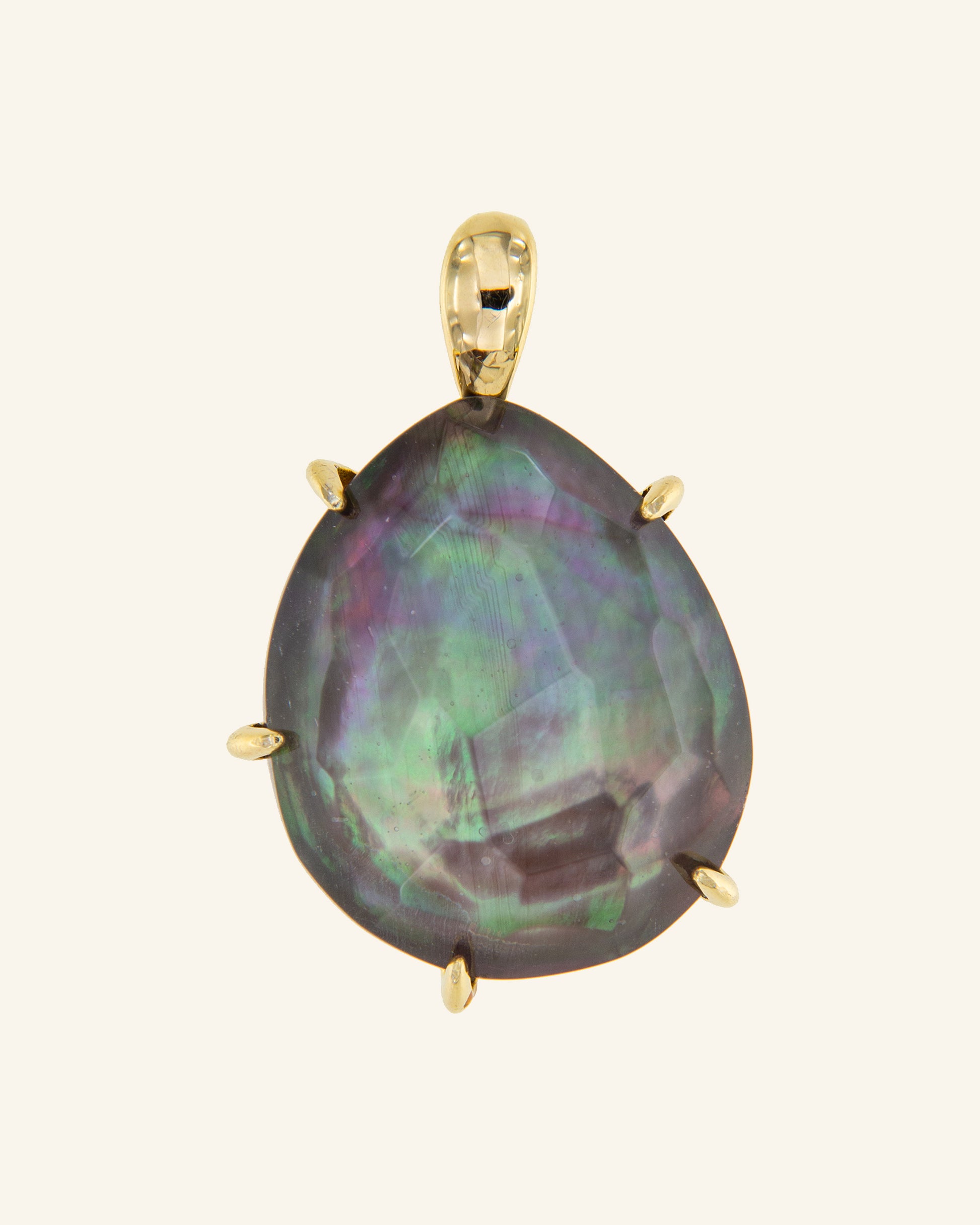 Pendant in champagne gold and hand-carved natural stone in the shape of a teardrop to bring light and color to your day-to-day looks. A simple and natural jewel perfect to combine with both a chain and our leather cords for a casual style.