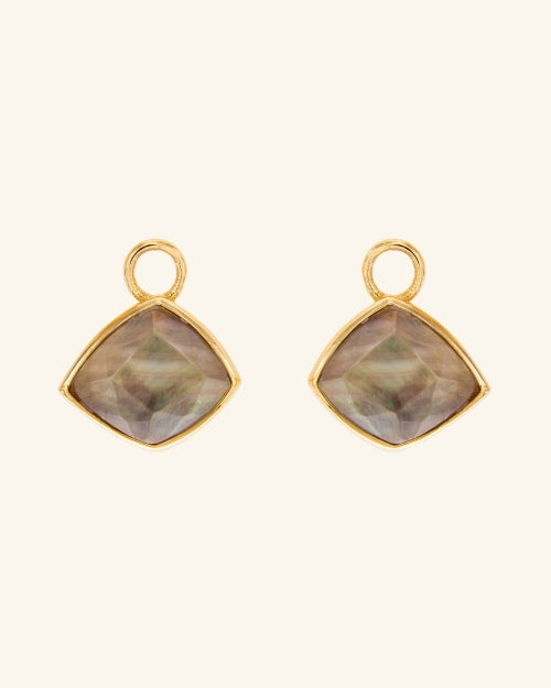 Colgantes para pendientes en oro champán y piedras naturales talladas a mano de forma irregular, creando un diseño que reproduce los caramelos de colores y que inspira alegría y diversión. Una joya que aporta movimiento, siendo combinable con la colección MyCoolook para crear pendientes únicos y personalizables.