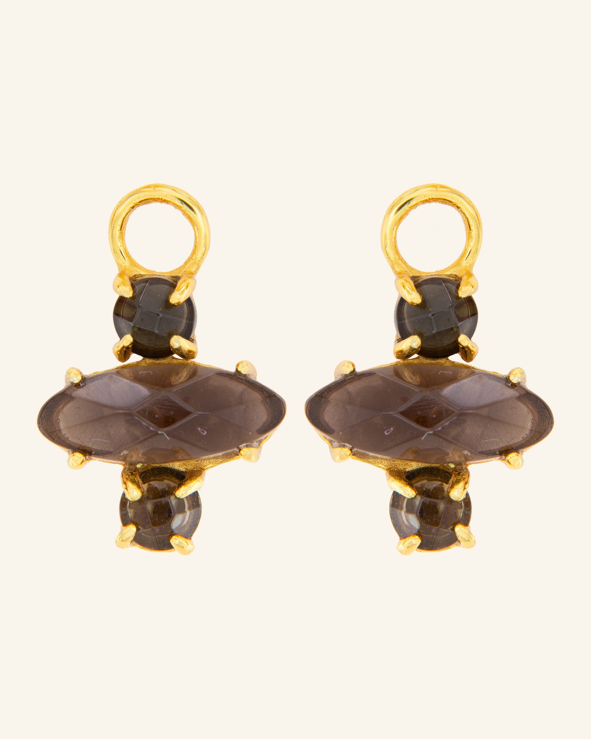 El elegante cuarzo fumé de estos pequeños y exóticos colgantes para pendientes son el toque primaveral perfecto que podrás combinar con cualquier look.
