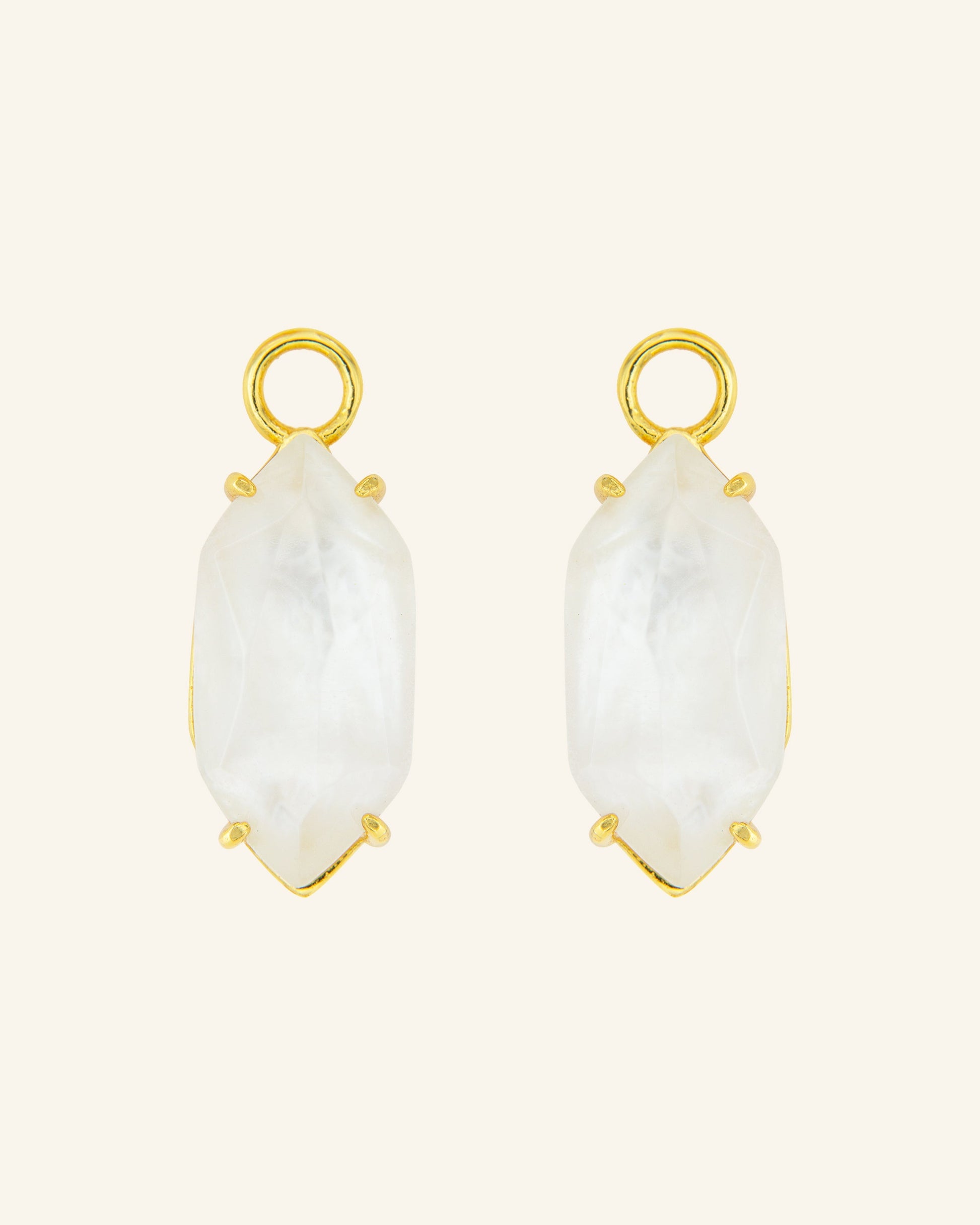 Pendant for earrings in champagne gold and hand-carved natural stone, in light and luminous tones. A piece is also part of the MyCoolook collection of interchangeable jewelry in which you can combine this piece to create your most unique and personal jewelry.