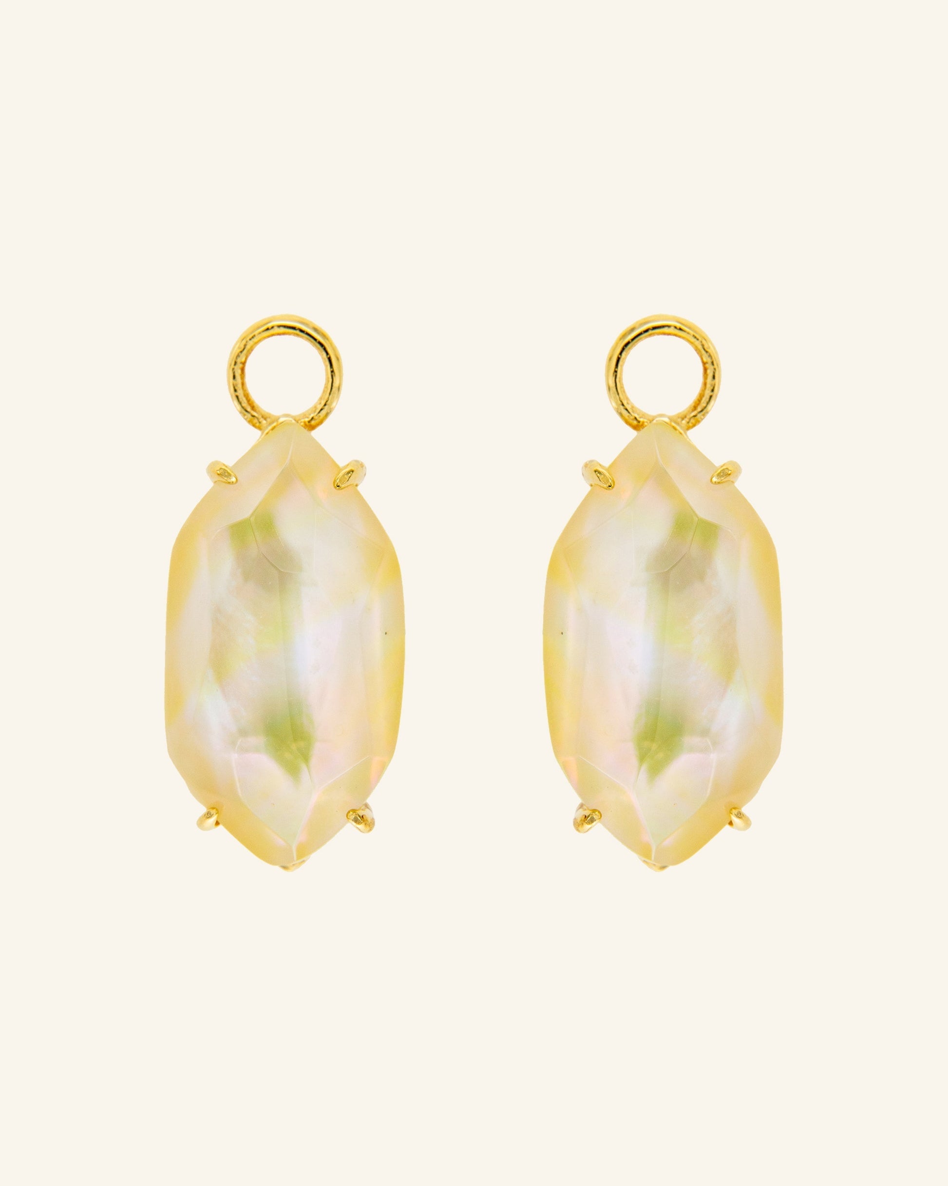 Colgante para pendientes en oro champán y piedra natural tallada a mano, en tonos claros y llenos de luz. Una pieza parte, además, de la colección MyCoolook de joyas intercambiables en la que podrás combinar esta pieza para crear tu joya más única y personal.