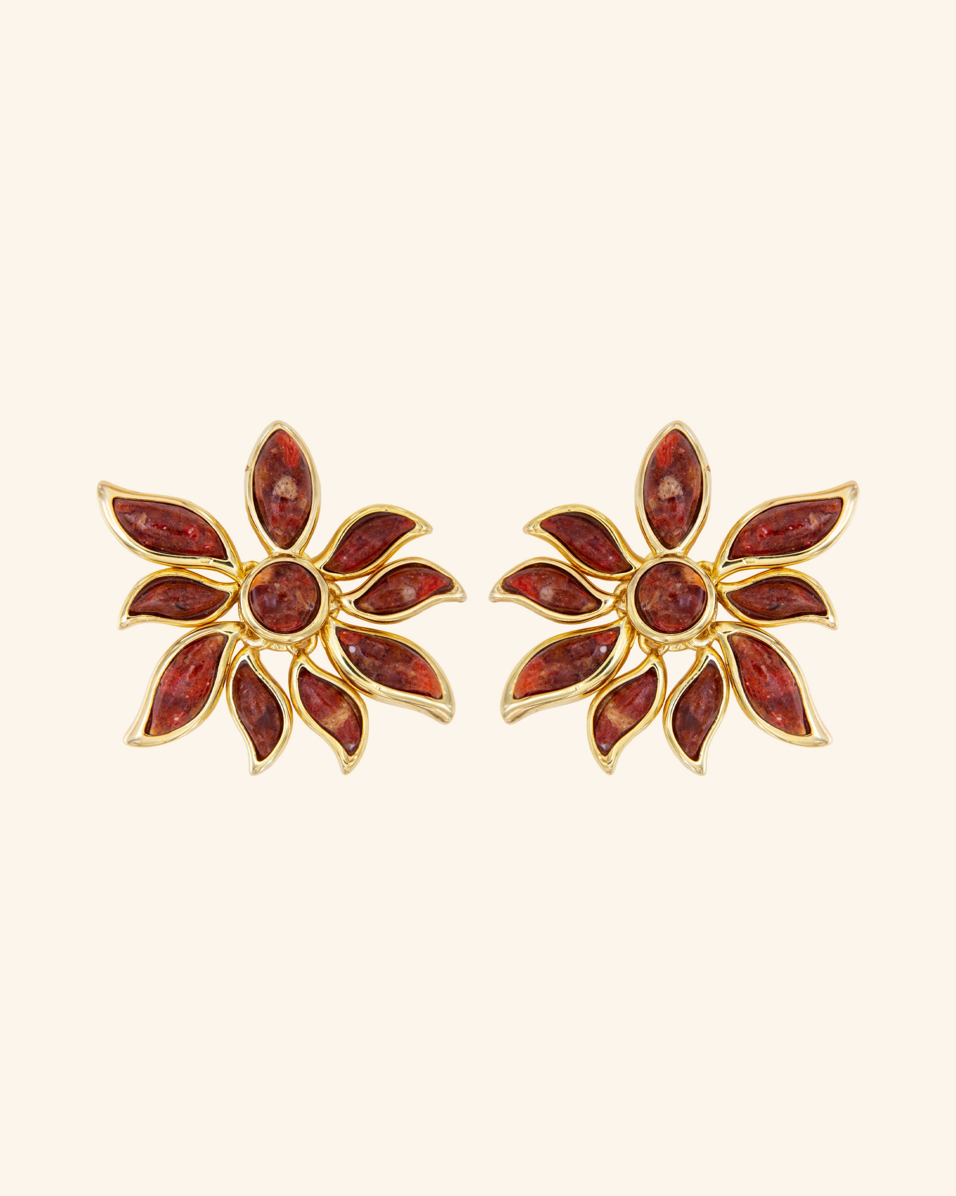 Plata de 925ms bañada en oro champán y coral rojo 100% natural.