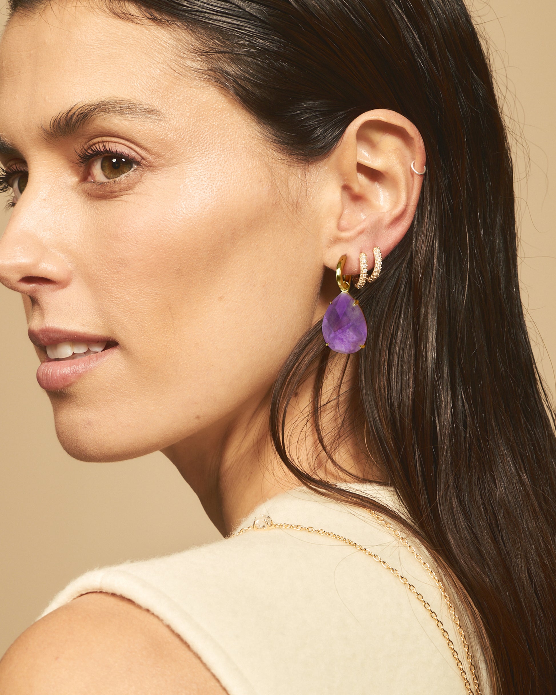 Teardrop-shaped pendants, for Mycoolook earrings. Made of champagne gold and hand-carved natural stones in the shape of a teardrop, creating a simple design and giving prominence to the purity of its minerals. A jewel full of light and color that will be the perfect option for all your MyCoolook combinations.
