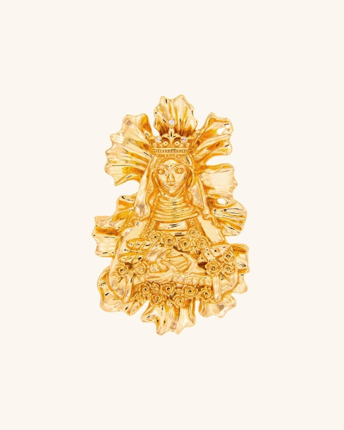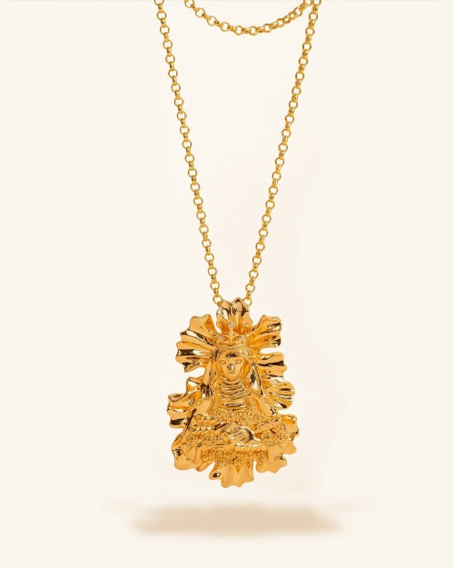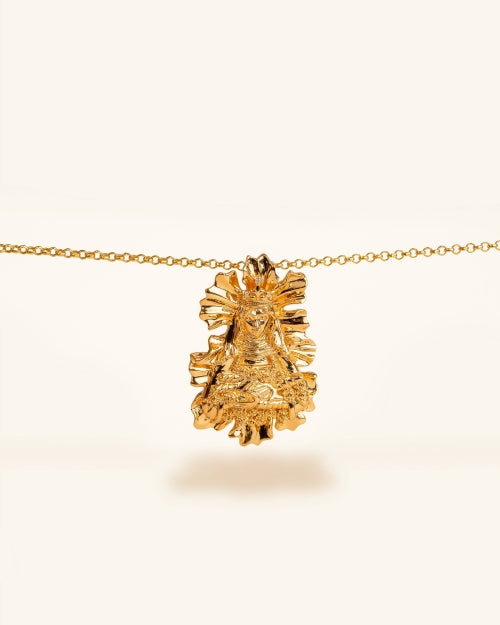 Champagne gold medal of the Virgin of Flowers and Our Lady of Wonders with carved petals. This virgin is originally from Spain and Uruguay, two of the places where Coolook is part of the daily lives of the female stylists who live there. For those fascinated by this virgin and everything she represents and those who believe in miracles, an amulet that will help you gain the strength and perseverance to make them happen.
