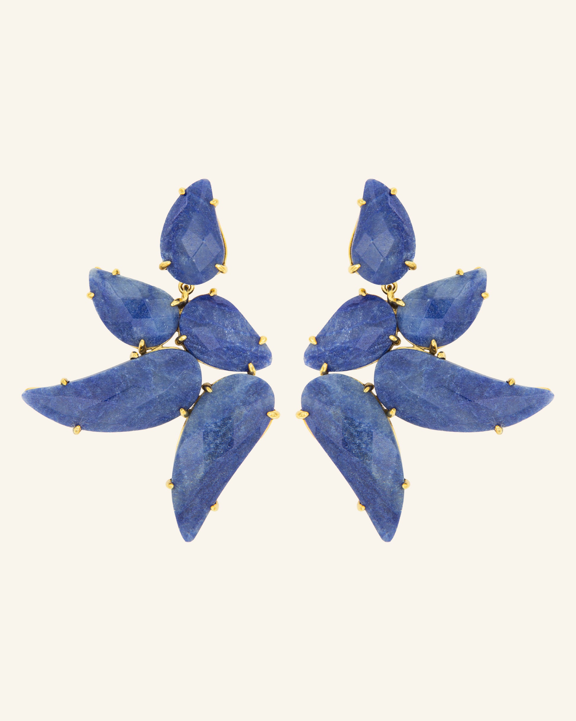 Earrings in champagne gold and hand-carved natural stones inspired by the curious marine animal that gives it its name. With fanciful shapes and light tones that create a harmony of colors, it transports us to the depths of the sea and the summer sun.