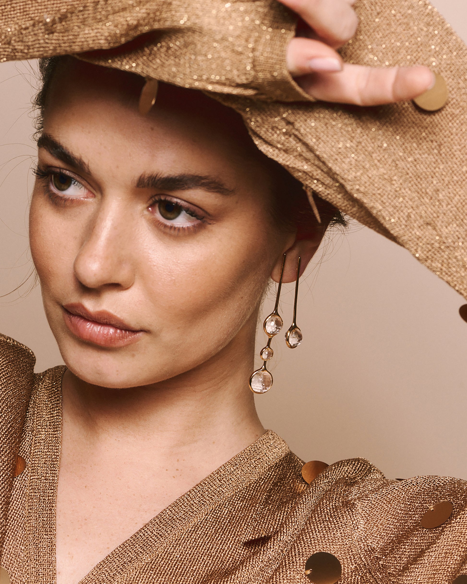 Composition: 925 ms silver plated in champagne gold and colorless quartz