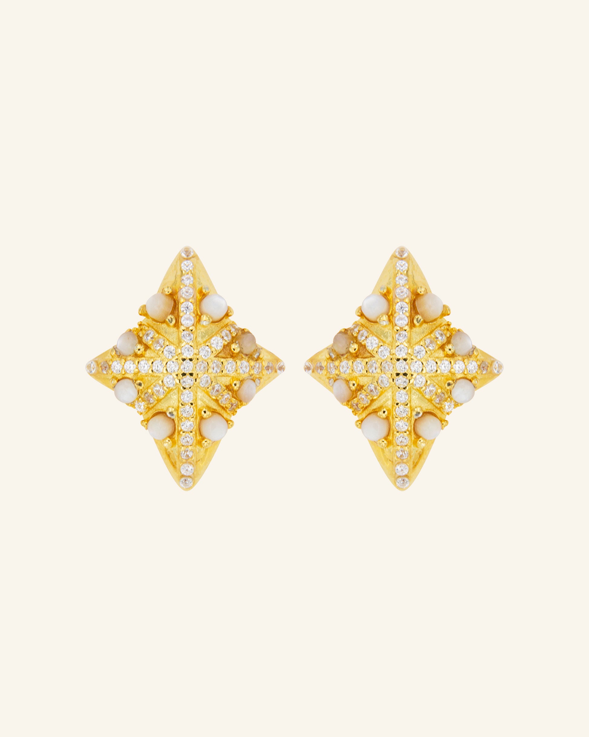Kuaraí o sol en guaraní, hemos llamado a estos pendientes cuyo diseño está inspirado en la luz de las lagunas saladas del chaco de Paraguay. Tienen el tamaño perfecto para novias discretas y sus madreperlas y circonitas lucen como el sol.