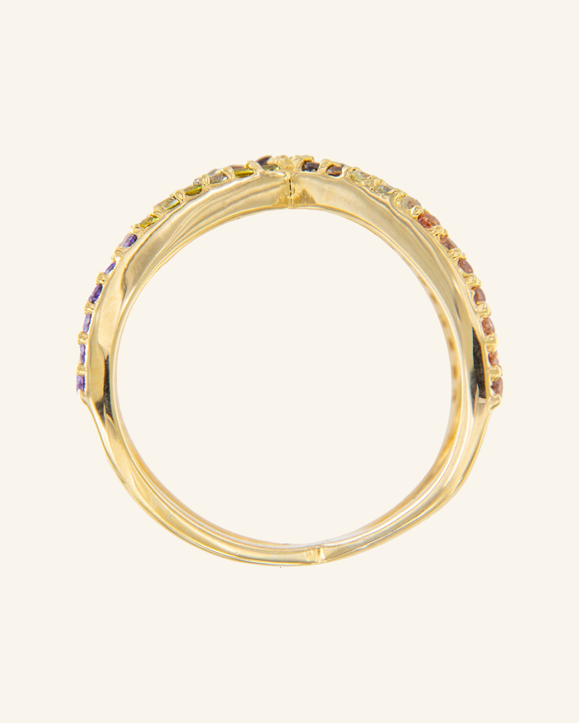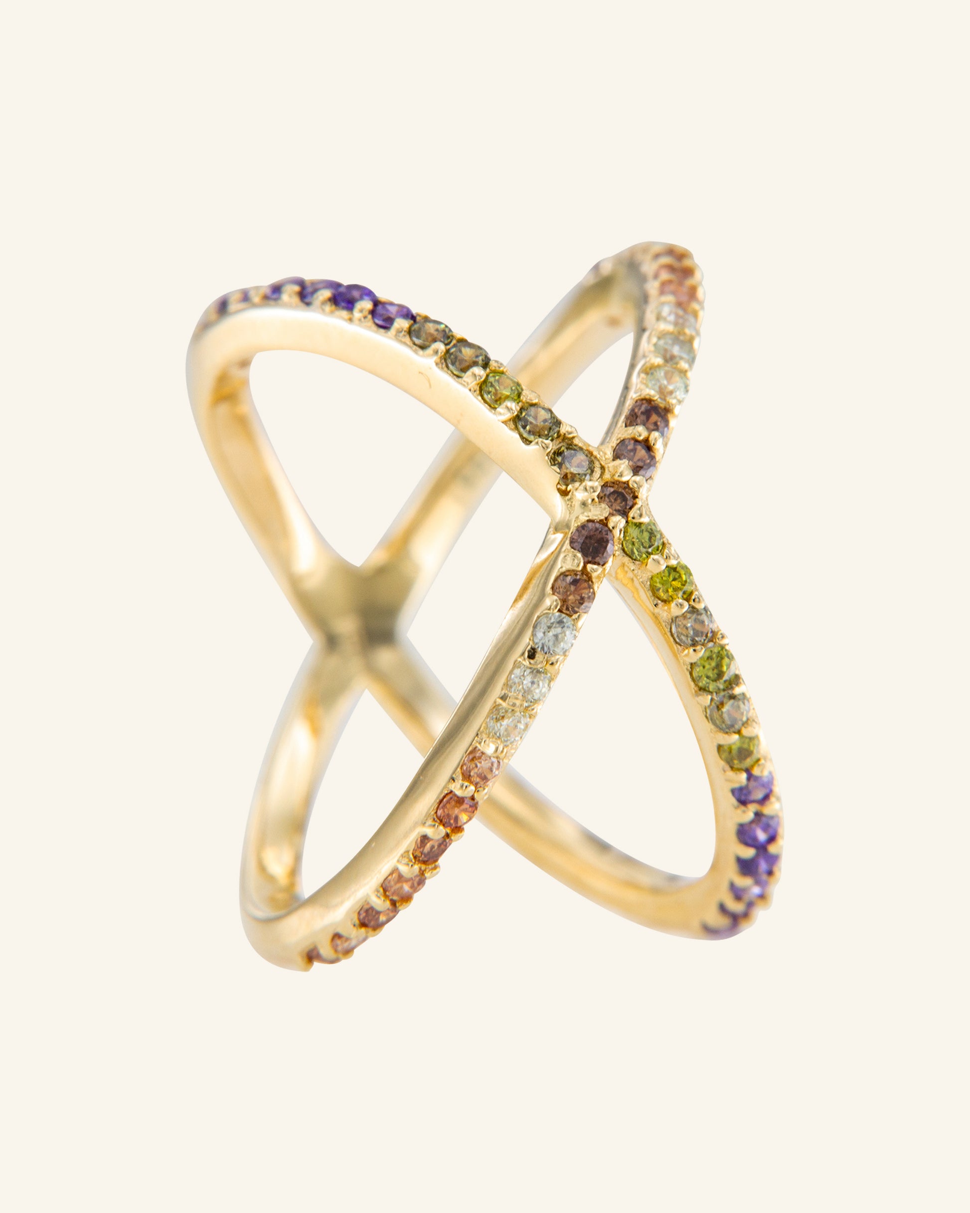 Anillo en oro champán con circonitas para darle mayor luminosidad a nuestro diseño en cruz. Una pieza perfecta para llevar todos los días.