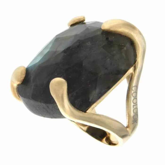 Anillo en oro champán y piedra natural tallada a mano en forma rectangular, con detalles tan especiales como el exclusivo diseño de sus garras irregulares. Una joya espectacular que complementará tanto tus looks más elegantes como los más casuales, tanto por sus tonos como por su forma.