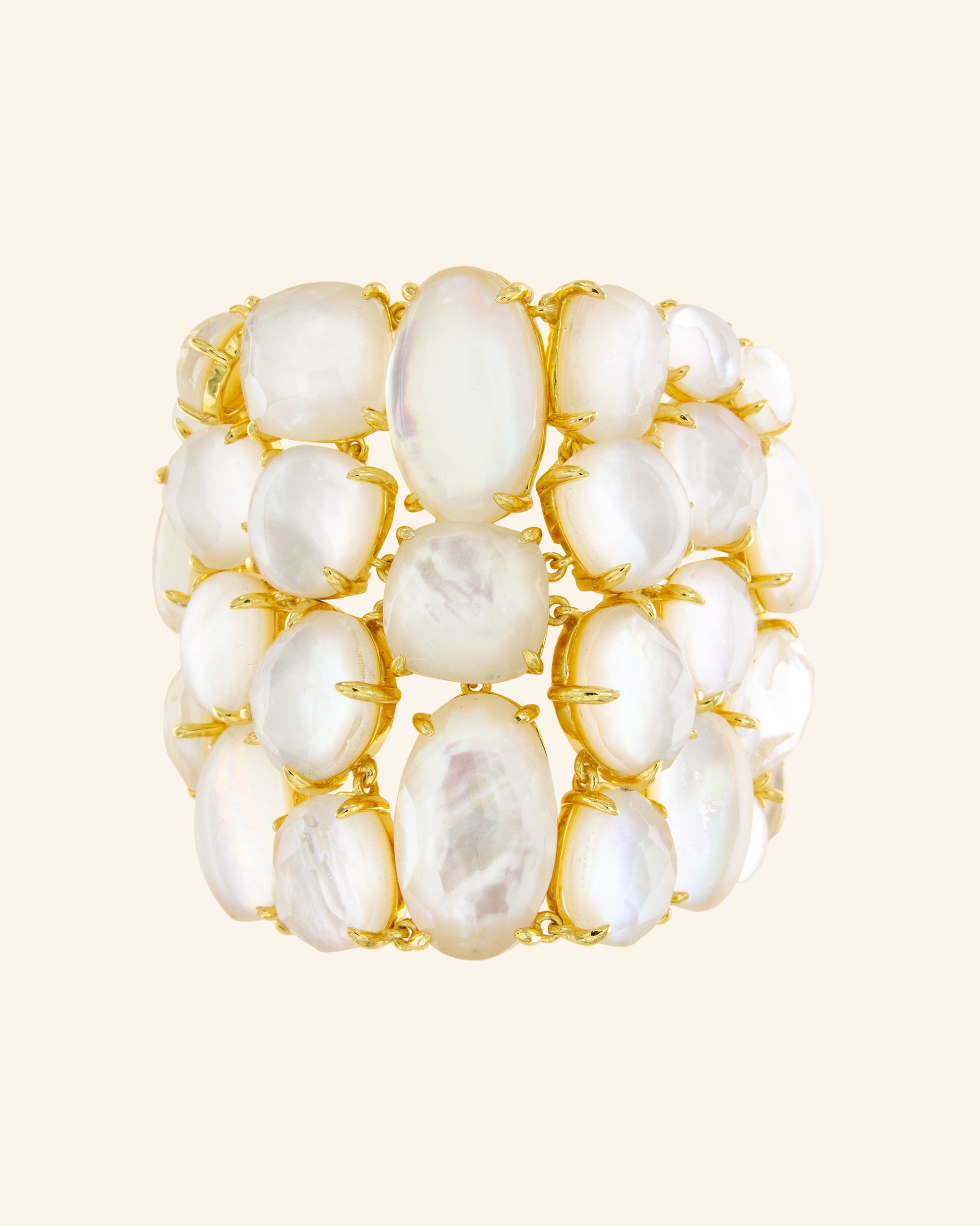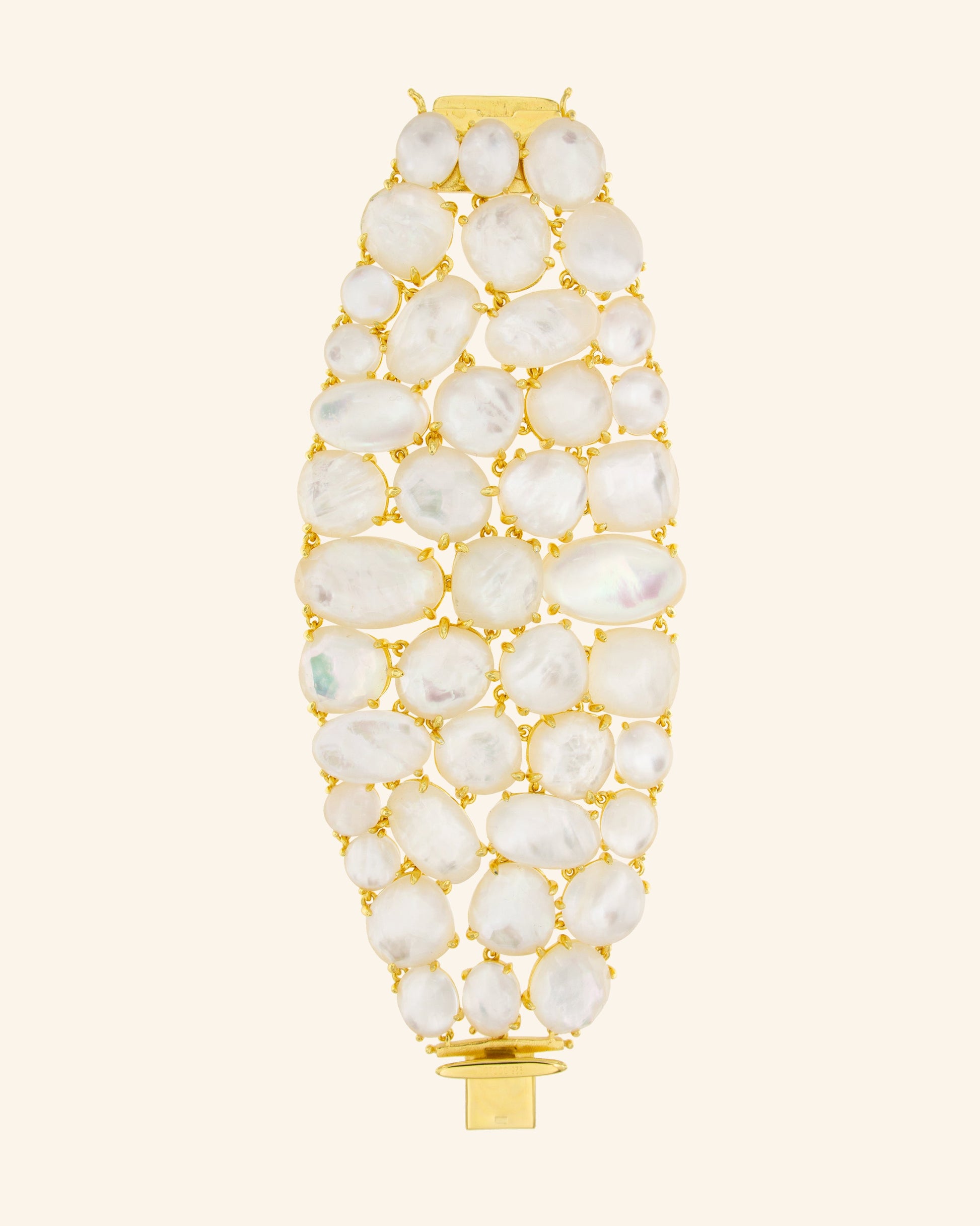 Una faceta de cuarzo sobre nácar y es hasta 41 piezas cortadas a mano de forma irregular con el fin de reproducir un diseño inspirado en la luz y la espuma del mar. Poco más se puede decir de esta icónica pulsera Liberis, ahora te invitamos a probártela y que nos cuentes.