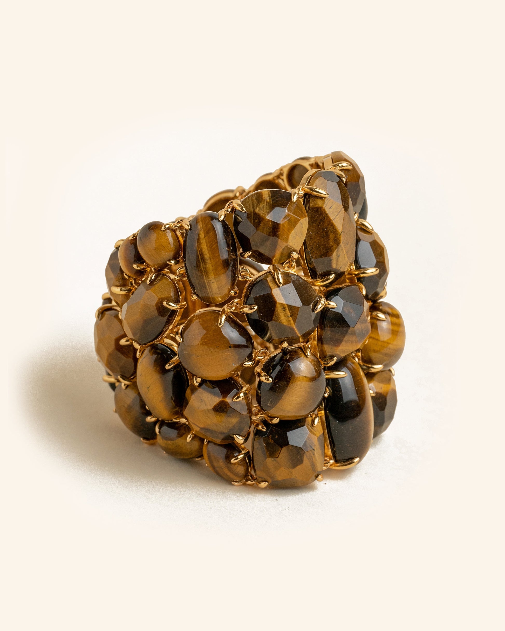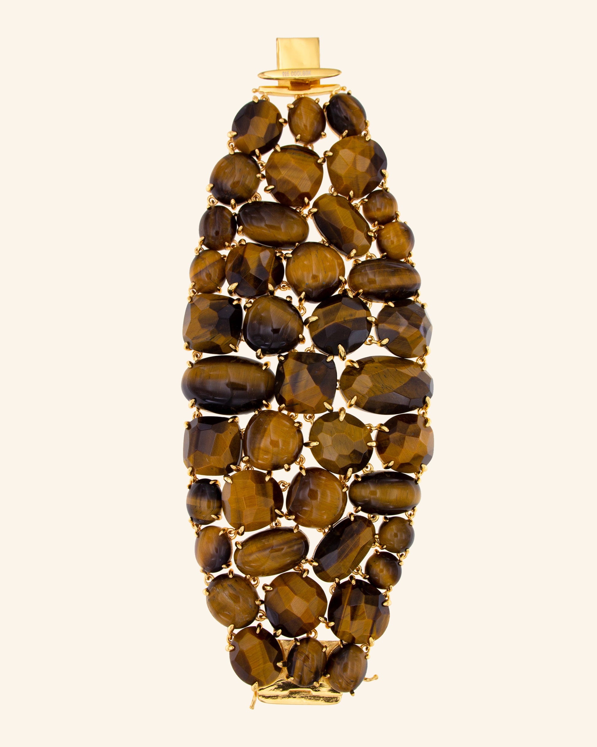 Las 41 piedras de ojo de tigre cortadas y engarzadas a mano por un meticuloso artesano en un taller, son la prueba de que la vida, sin perfección no es bella.