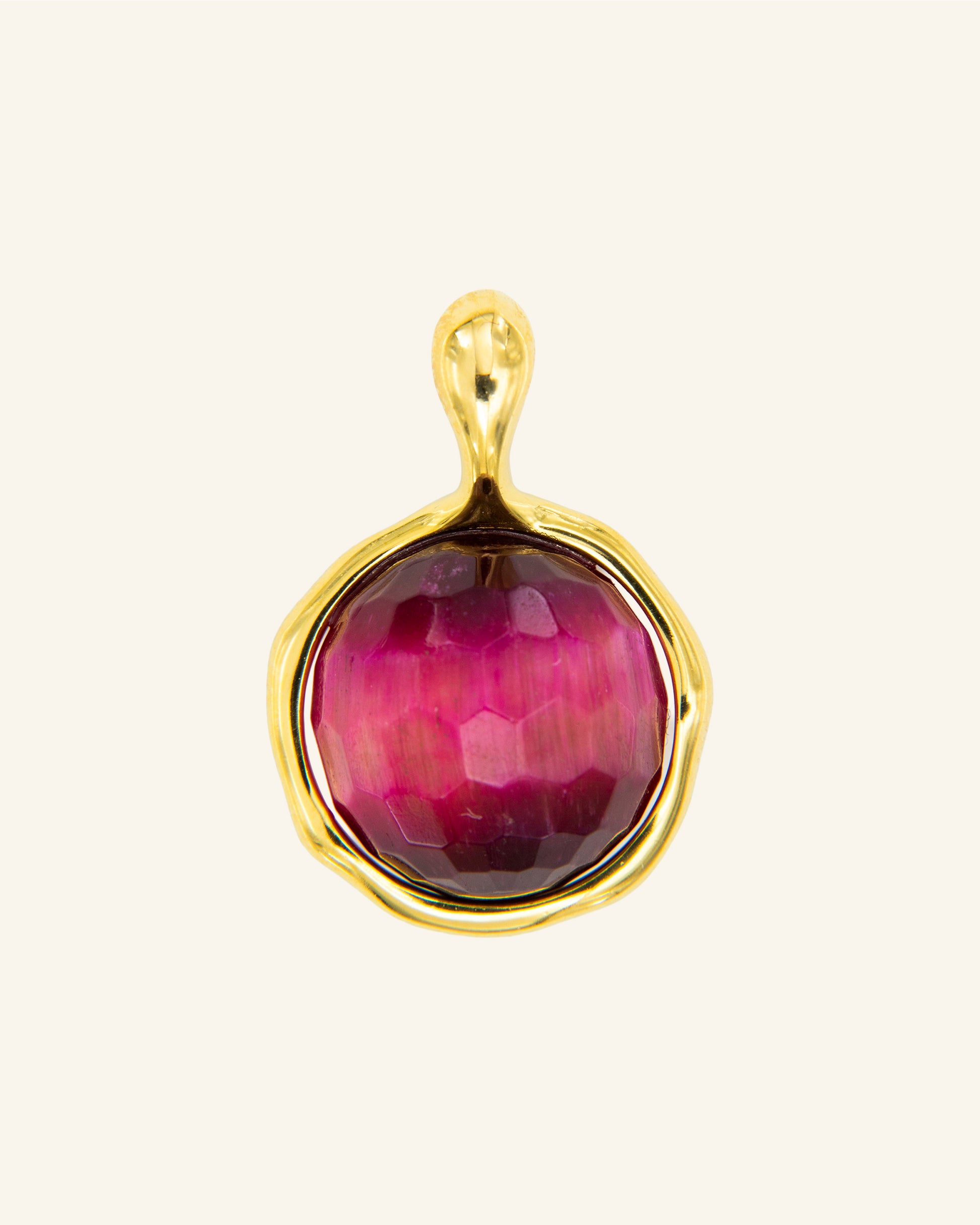 Plata 925 ms bañada en oro champán y poderoso ojo tigre frambuesa.