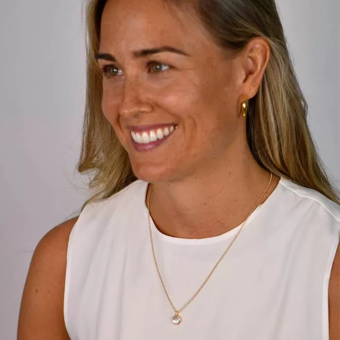 Colgante con piedra natural tallada a mano con bisel en oro champán. Un colgante en versión mini que te acompañará a todos tus planes, combinándolo con una cadena o con nuestros cordones de cuero en distintos tonos.
