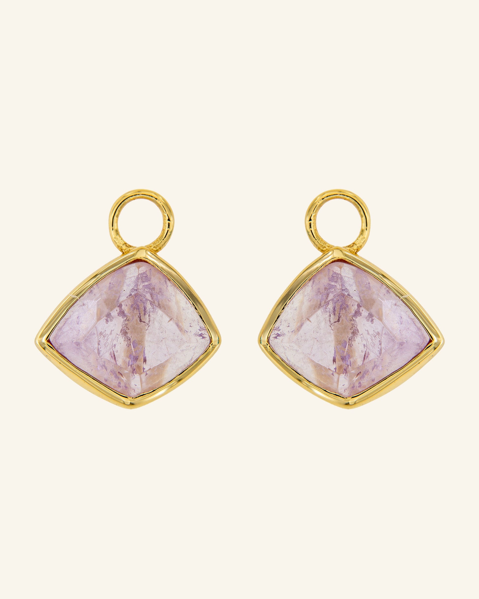 Colgantes para pendientes en oro champán y piedras naturales talladas a mano de forma irregular, creando un diseño que reproduce los caramelos de colores y que inspira alegría y diversión. Una joya que aporta movimiento, siendo combinable con la colección MyCoolook para crear pendientes únicos y personalizables.