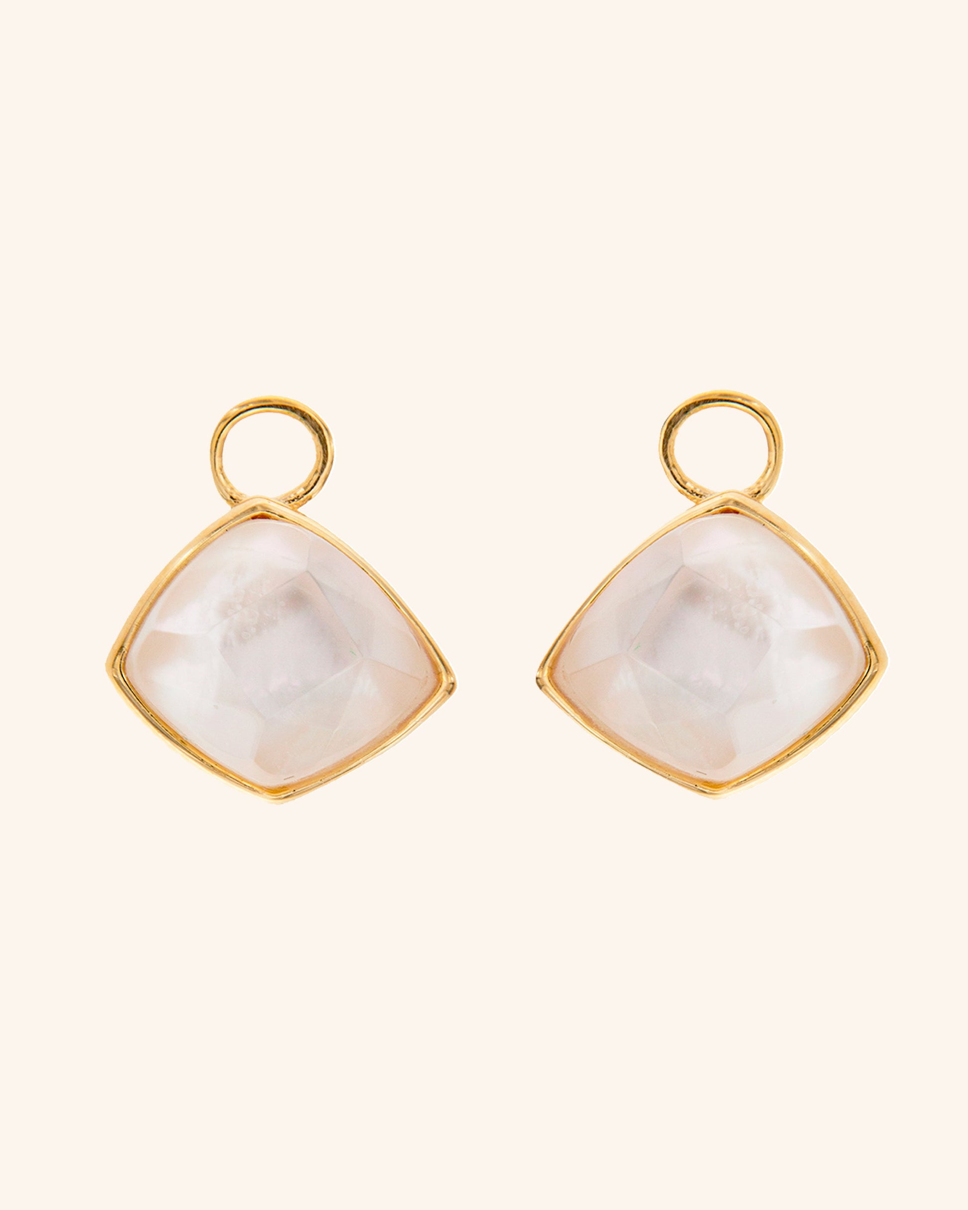 Colgantes para pendientes en oro champán y piedras naturales talladas a mano de forma irregular, creando un diseño que reproduce los caramelos de colores y que inspira alegría y diversión. Una joya que aporta movimiento, siendo combinable con la colección MyCoolook para crear pendientes únicos y personalizables.