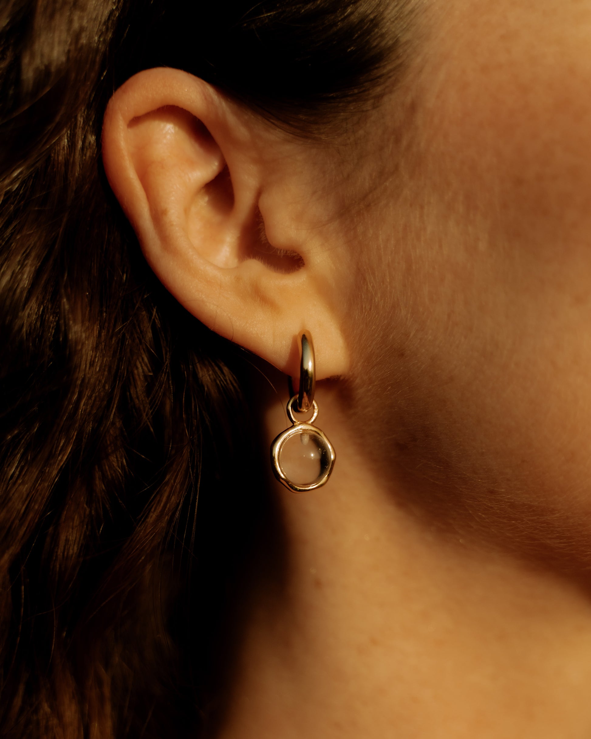 Estos versátiles colgantes para pendientes son una versión de los ya icónicos pendientes Crisálida. Al ser las piedras 3D son perfectos si eres de las que te gusta recogerte el pelo.