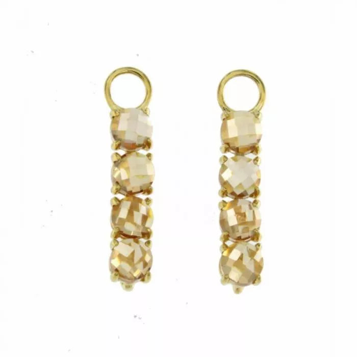 Colgantes para pendientes en oro champán y piedras naturales talladas a mano, creando una fila única de colores vibrantes y llenos de luz. Una pieza sencilla y elegante que juega con el largo y aporta movimiento a todas las combinaciones MyCoolook.