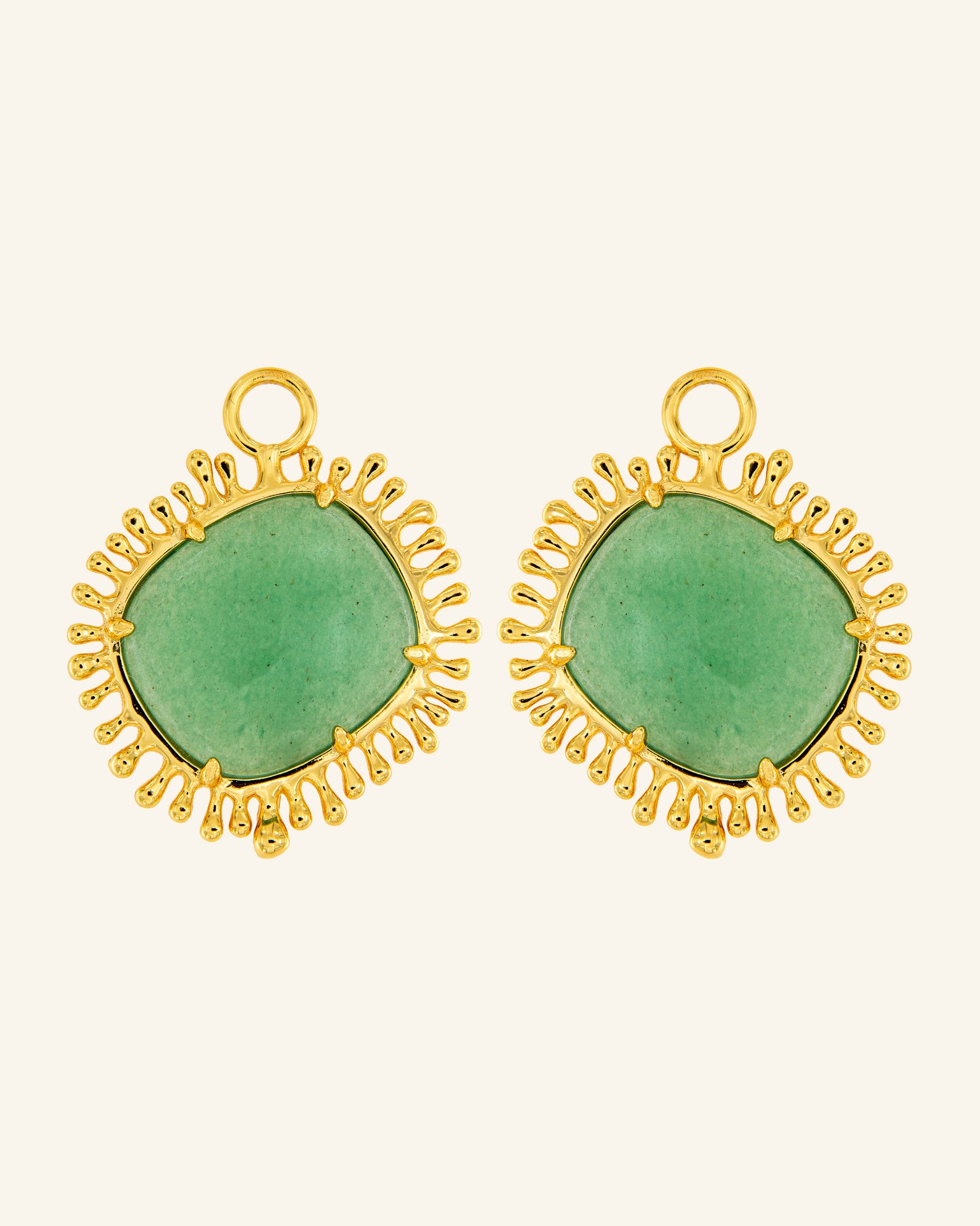 Colgantes para pendientes en aventurina. Puedes colgar uno o varios para conseguir el look más refrescante y a la vez ligero.