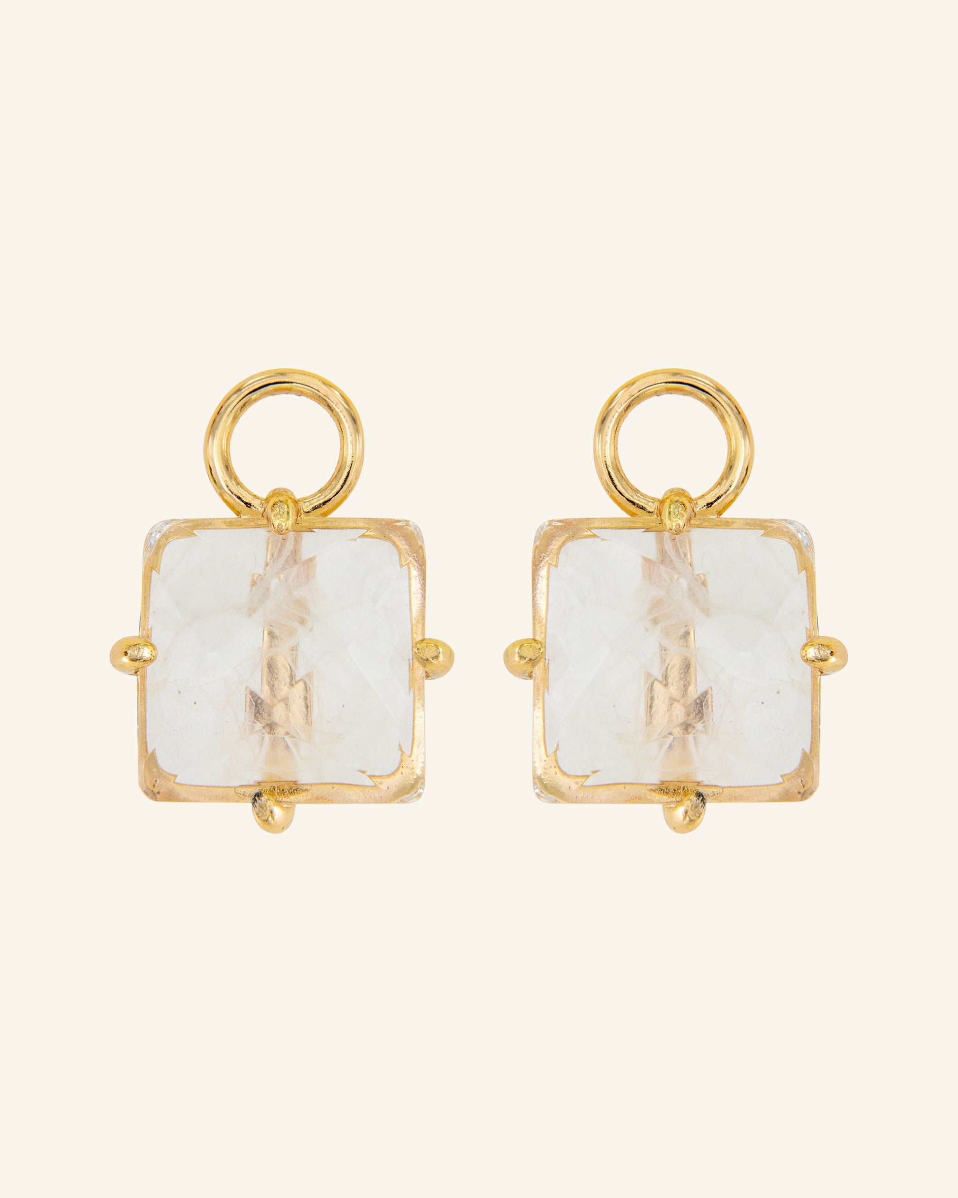 Colgante para pendientes en oro champán y piedras naturales talladas a mano en forma cuadrada, creando un diseño sencillo pero lleno de luz y color. La pieza perfecta para combinar con distintas partes de la colección MyCoolook y crear tus pendientes más únicos y personalizables.