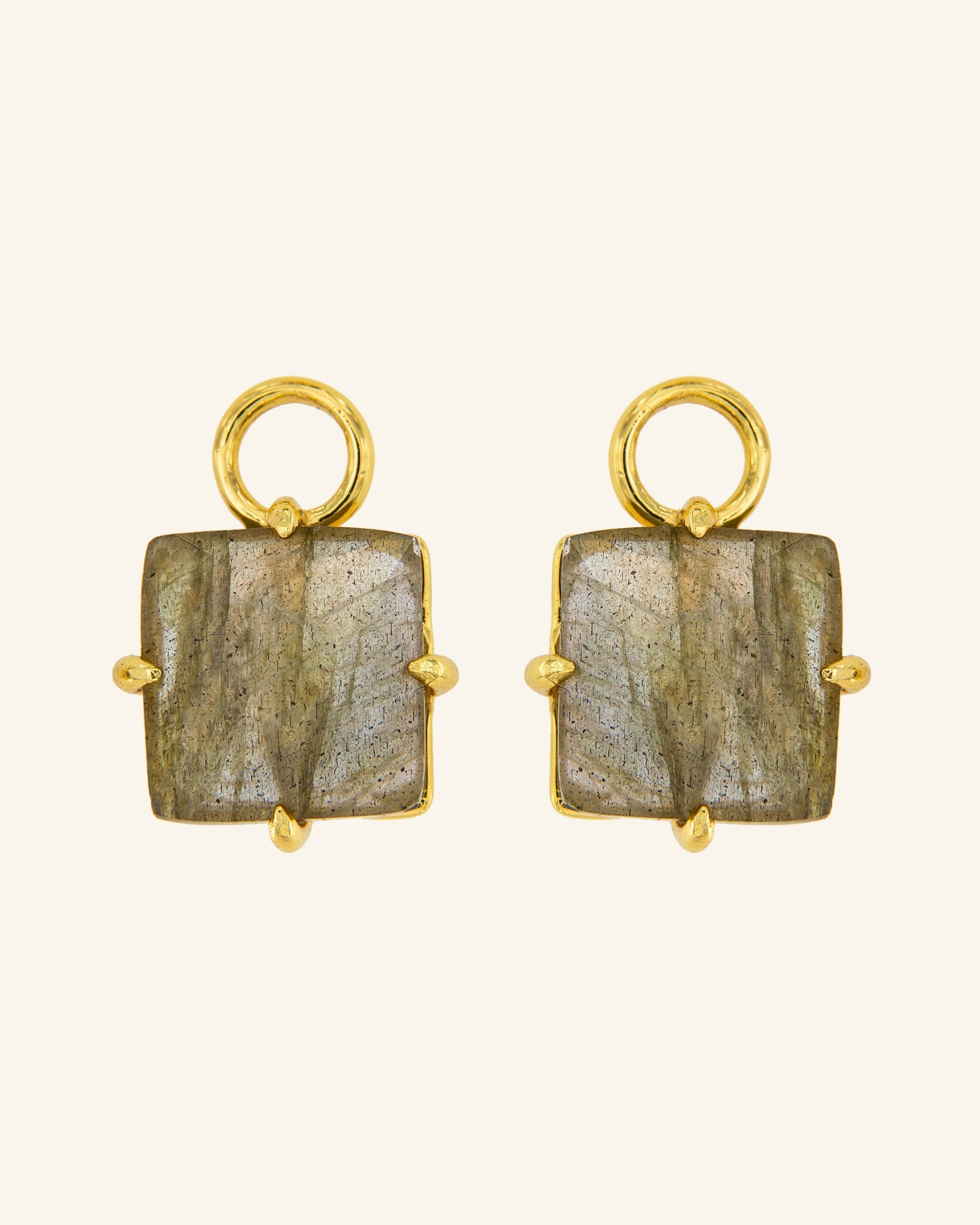 Colgante para pendientes en oro champán y piedras naturales talladas a mano en forma cuadrada, creando un diseño sencillo pero lleno de luz y color. La pieza perfecta para combinar con distintas partes de la colección MyCoolook y crear tus pendientes más únicos y personalizables.