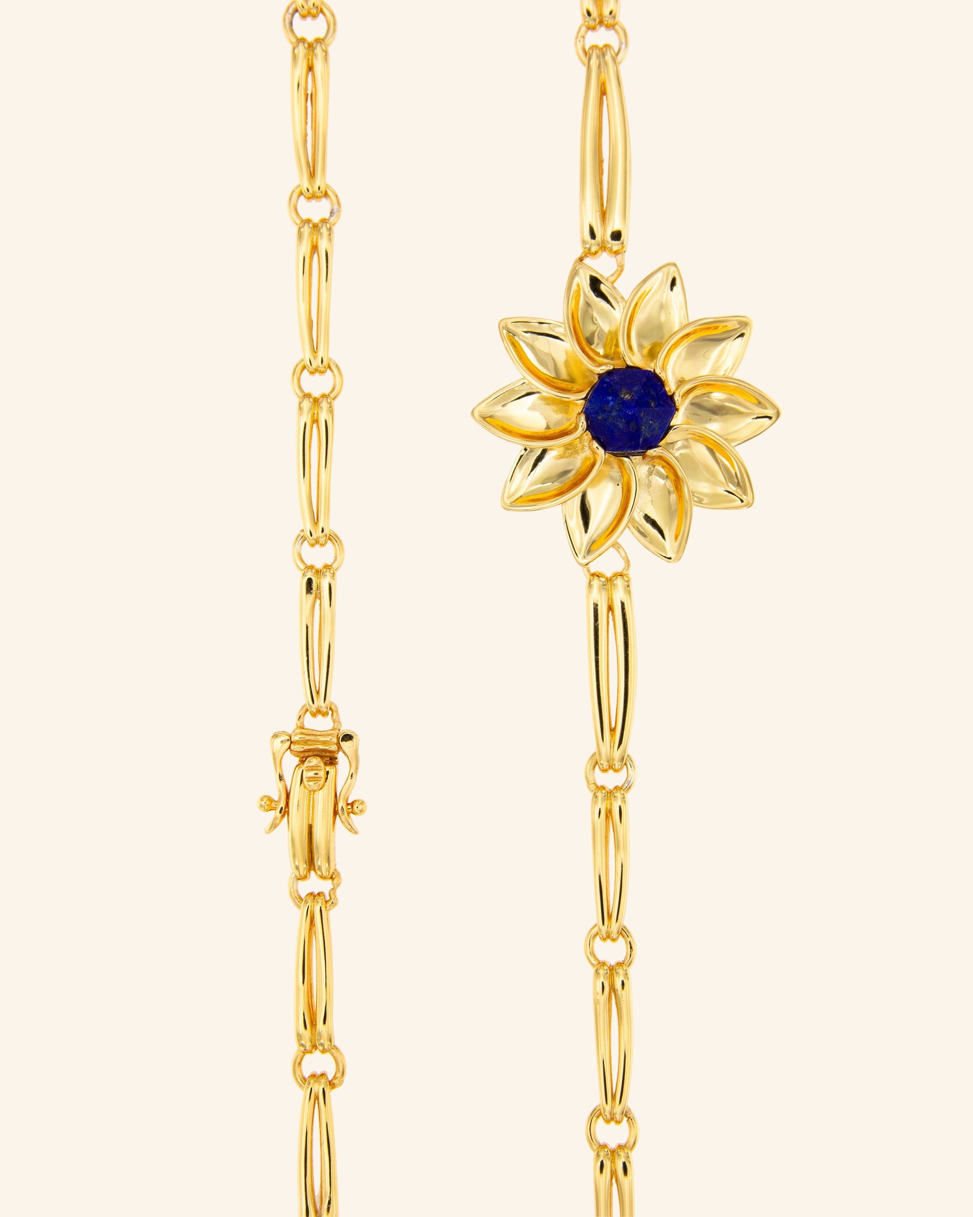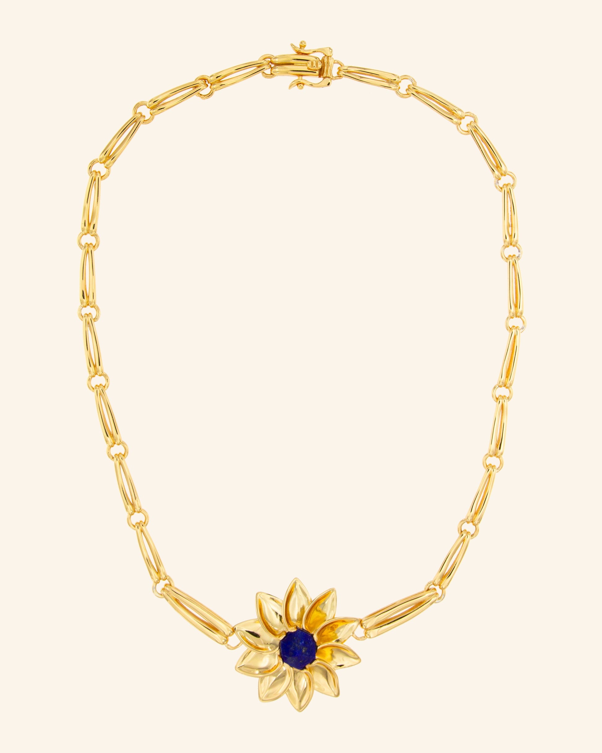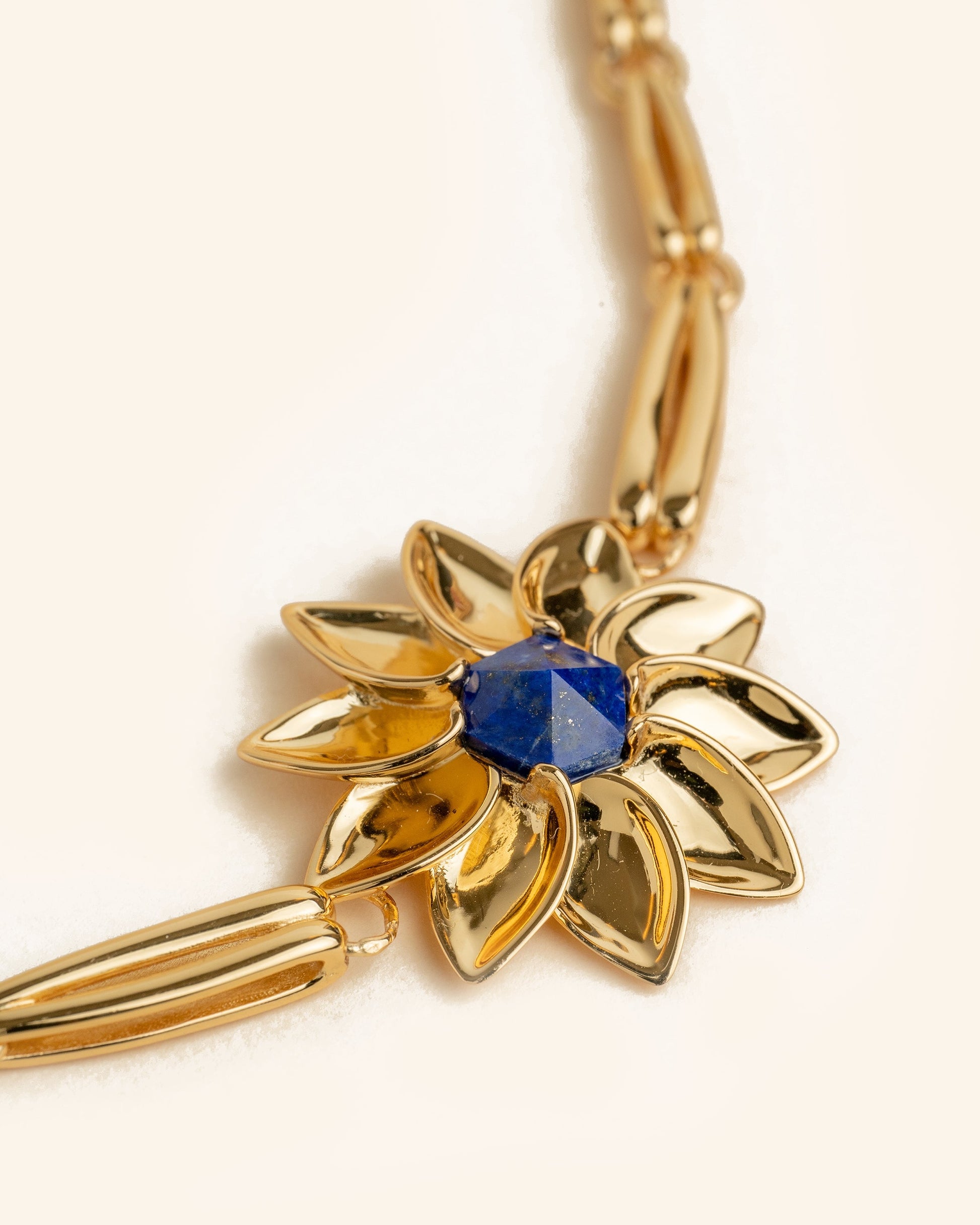 Impresionante collar con eslabones de estilo Art Nouveau y estrella floral geométrica en lapislázuli que captará todas las miradas de cielo y tierra.