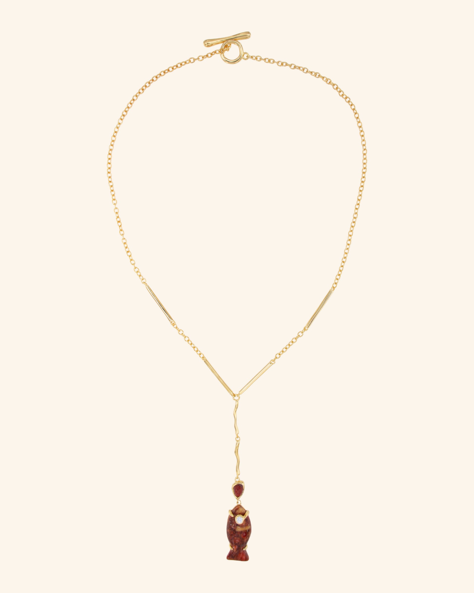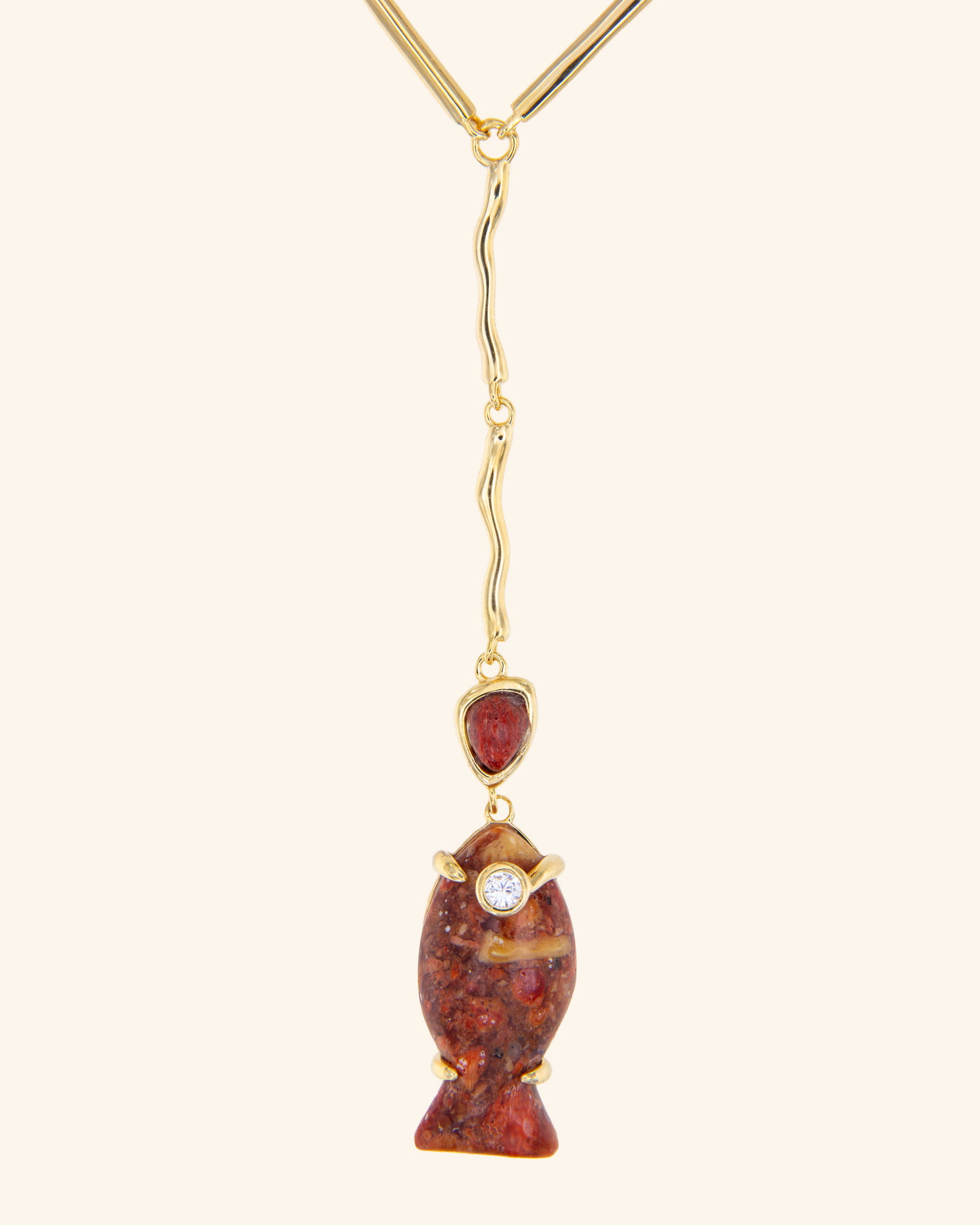 Plata de 925ms con baño de oro champán de 18k y coral de extracción sostenible.
