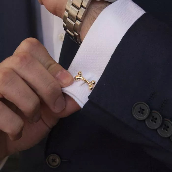Gemelos en oro champán con diseño de huesos y detalles en piedras naturales talladas a mano para dar un toque de color. Un diseño moderno y elegante para todos aquellos hombres Coolook que buscan detalles originales e innovadores.