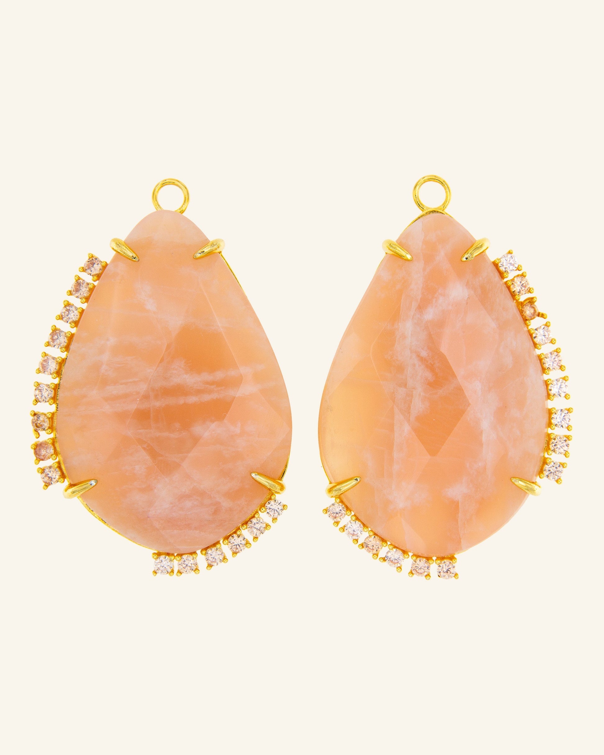 Colgantes para pendientes MyCoolook, de Piedraluna natural, tallados a mano en forma de lágrima. Ideales para crear tus joyas más exclusivas combinándolos con cualquier parte superior de la colección. Puedes usarlos también como colgantes, si añades un pasacadenas y las cuelgas de un cordón o cadena de plata con baño de oro.