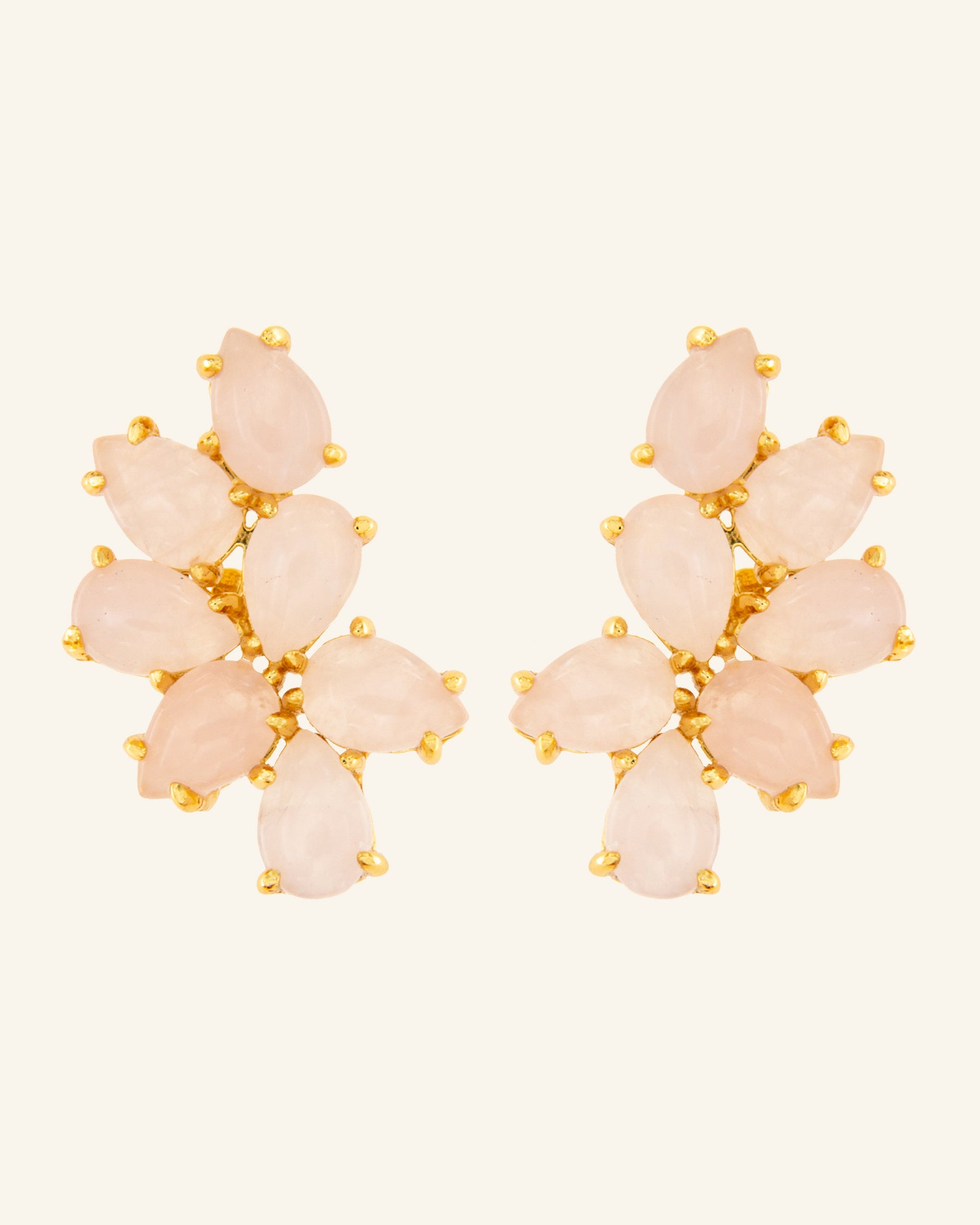 Estos pendientes tienen un diseño orgánico y estructurado que enmarca y resalta tus ojos. El cuarzo rosa crea un efecto "baby doll" súper chic. Son ligeros y cómodos como un delicado nido, y además, puedes colgar de ellos unos colgantes que hagan volar tu look a lo más alto.