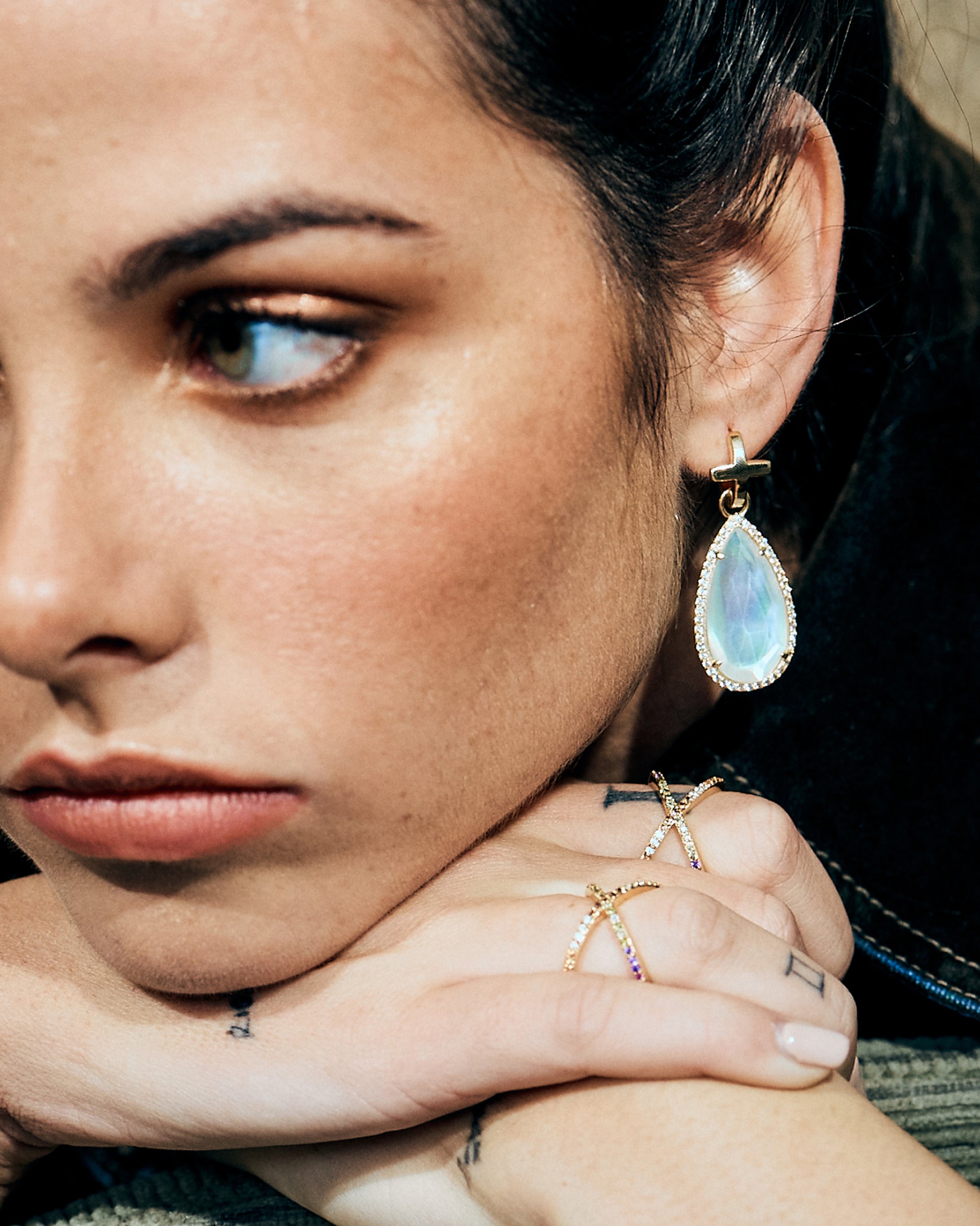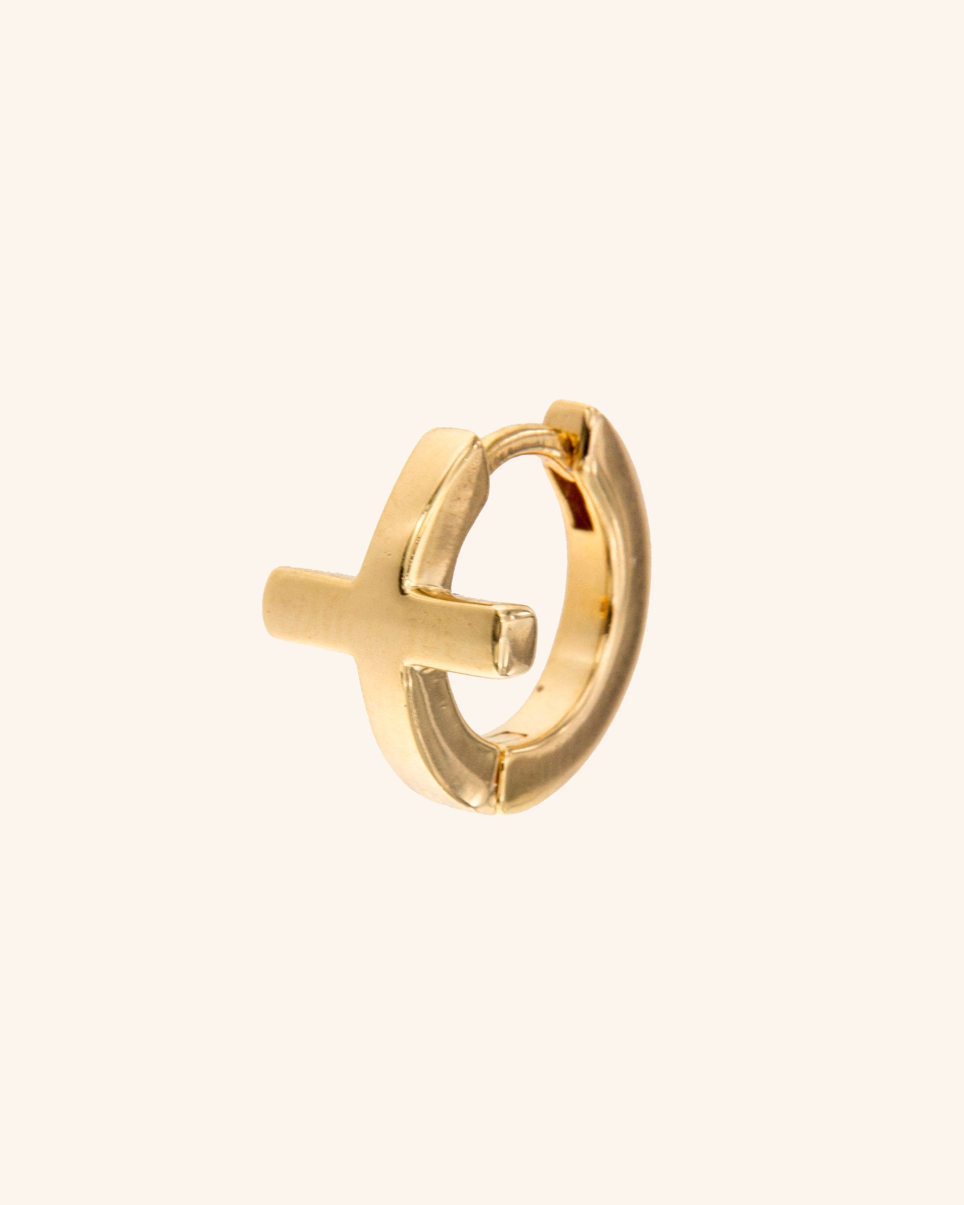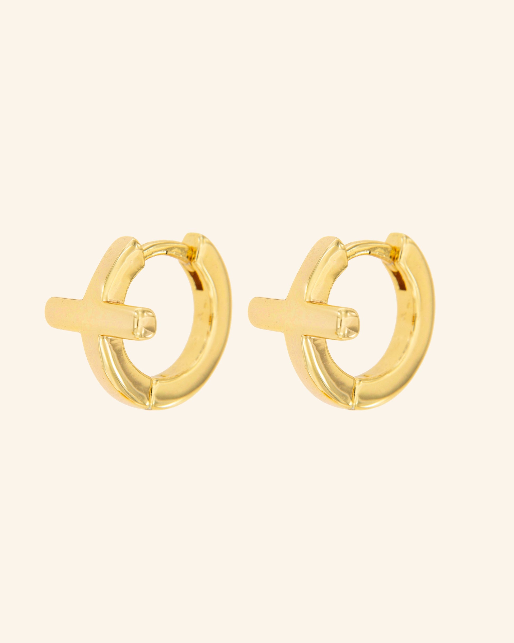 Pendientes en oro champán con diseño de cruces; rediseñando el concepto de aros minimalista para dar un aire más moderno a tu básico de dia a dia. Combinable con MyCoolook para hacerlo aún más único.