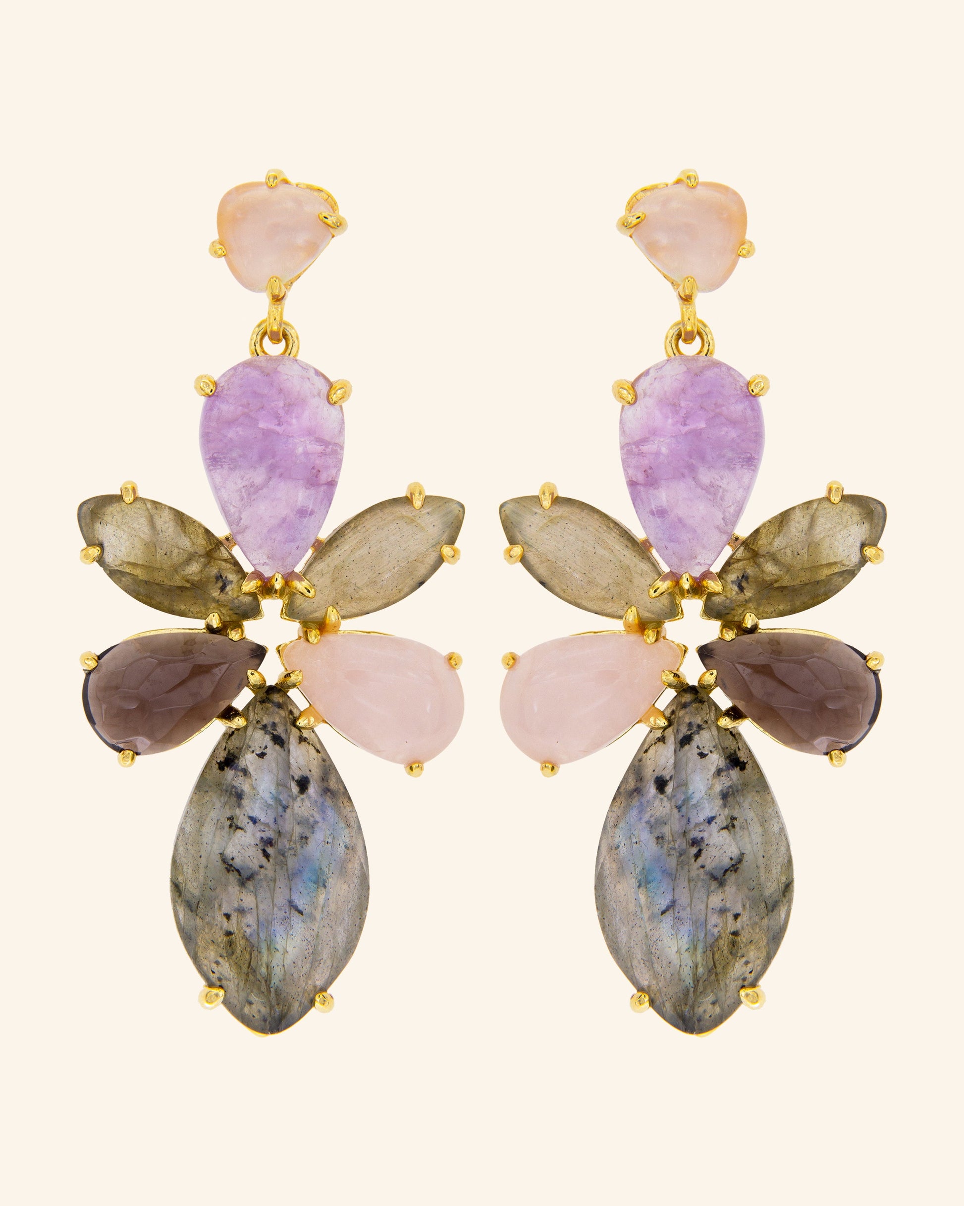 Pendientes Fauno con labradorita, amatista, cuarzo rosa y fumé