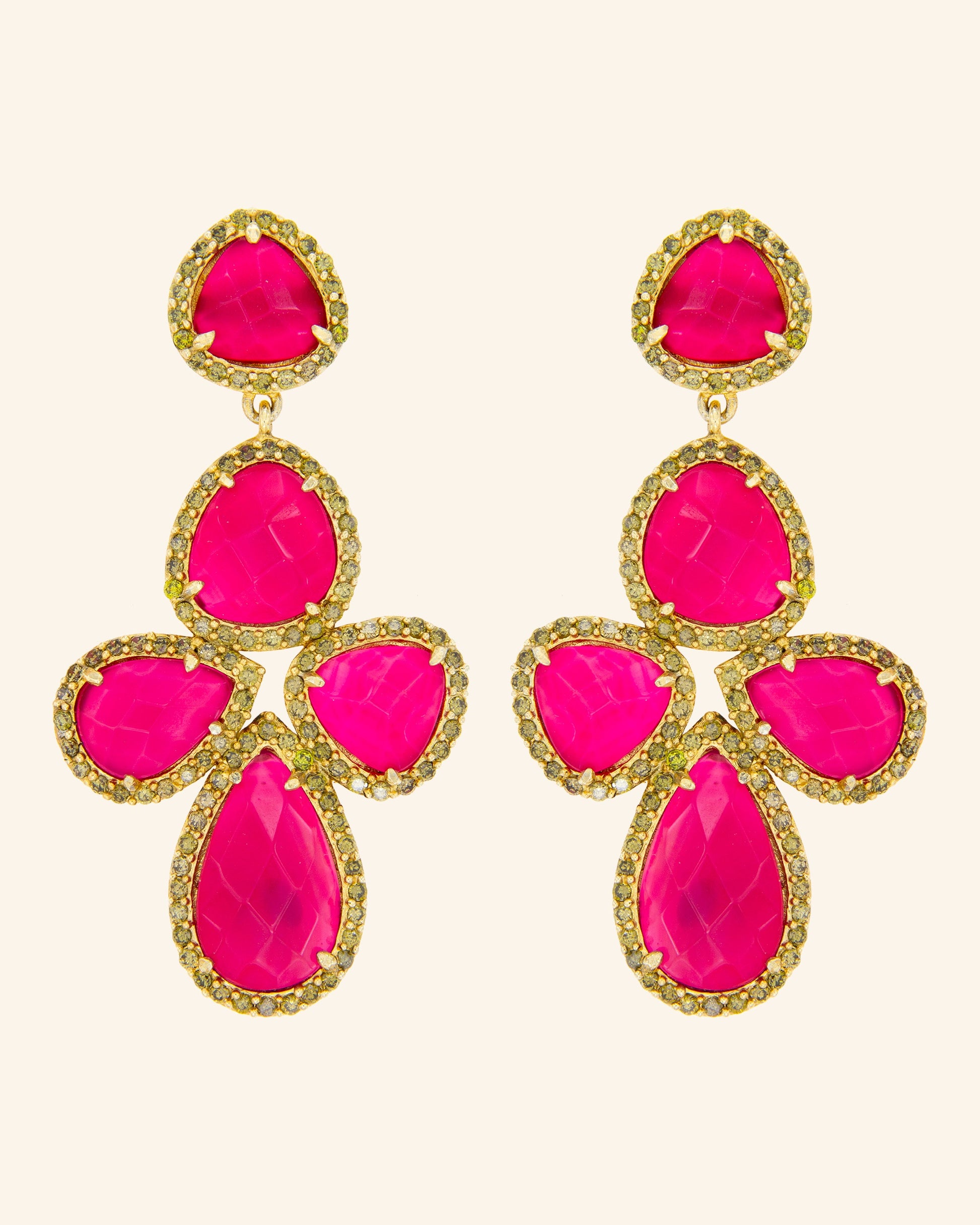 Pendientes en oro champán y detalles en circonitas en tonos tierra, contrastando con el color profundo de sus piedras naturales. Su color y diseño los convierten en la pieza perfecta para tus ocasiones más especiales.