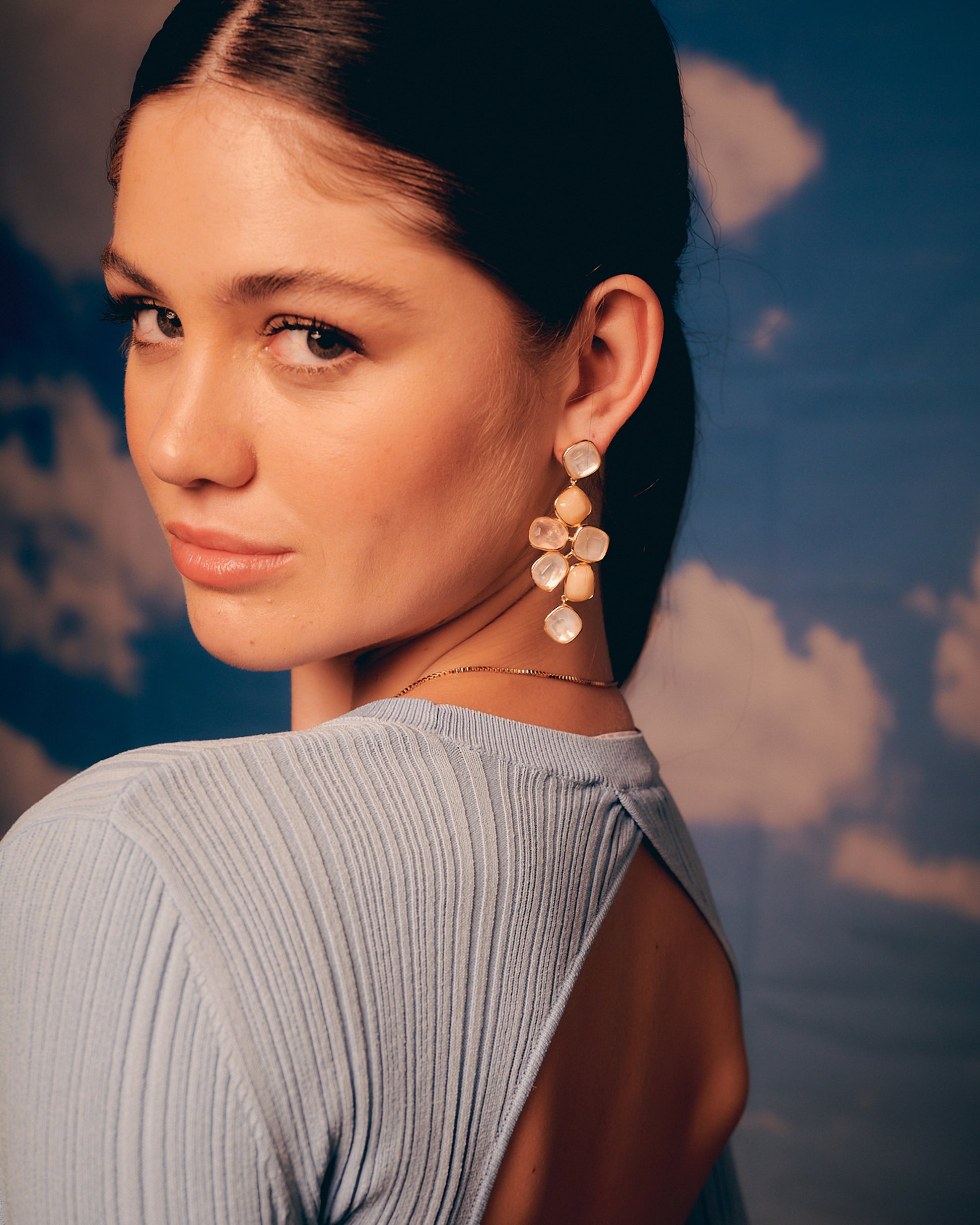 Pendientes Hydra Mix con cuarzo rosa, calcita y madreperla blanca