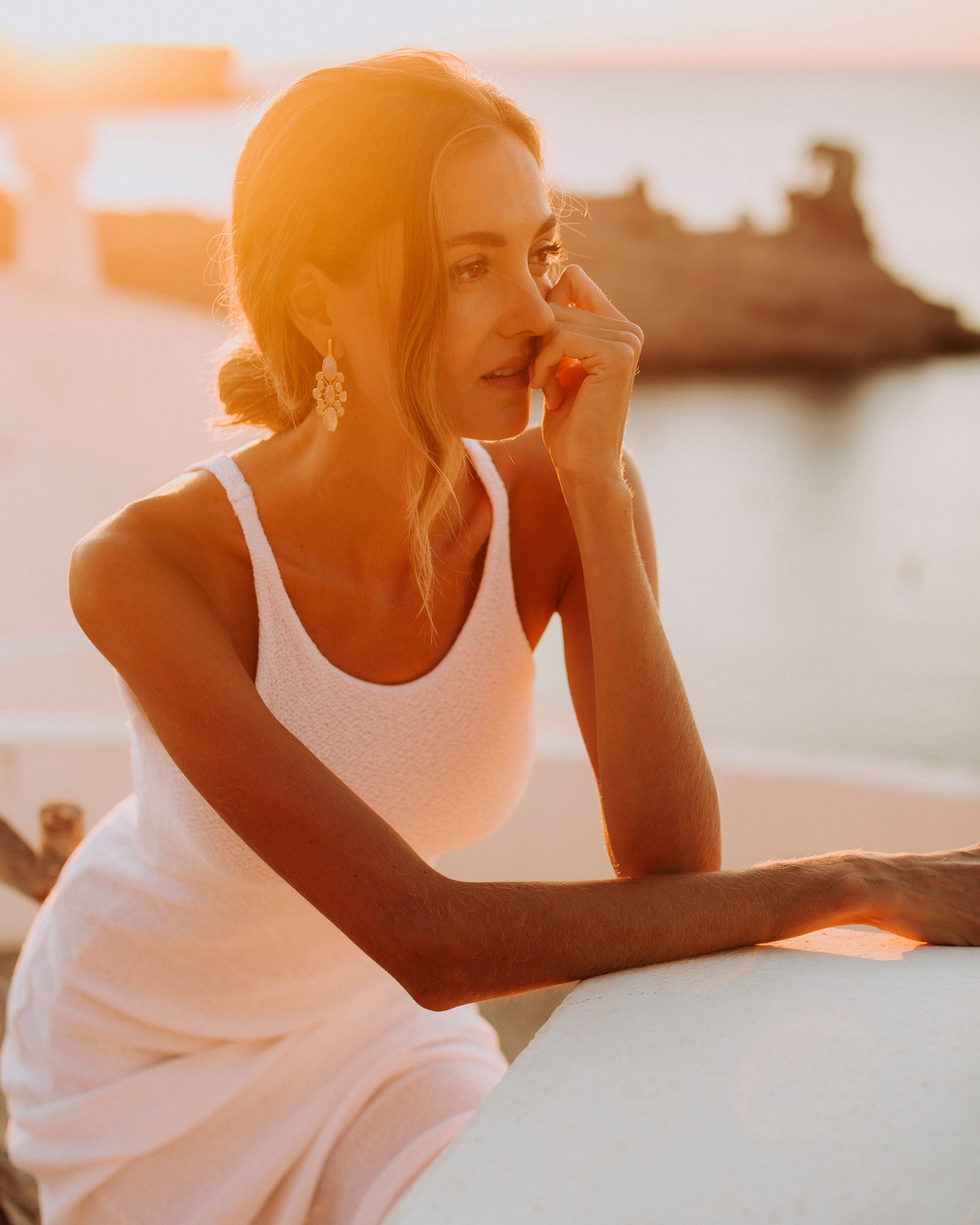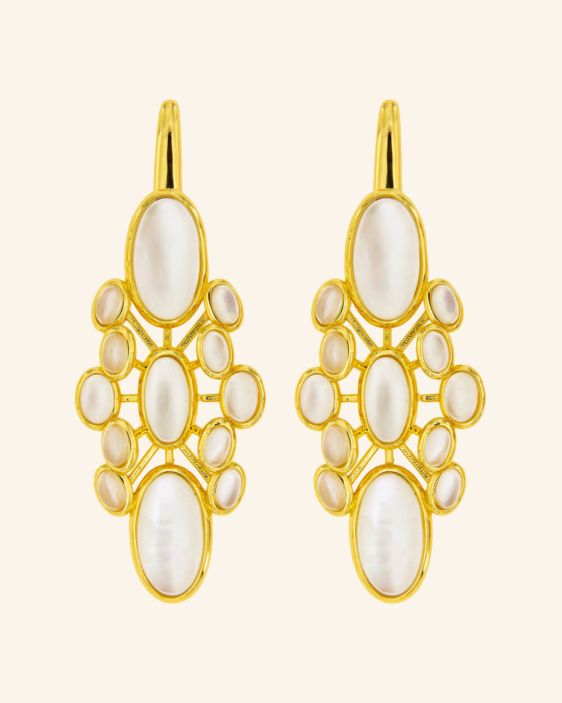 Plata 925 ms bañada en oro champán, y madreperla blanca 100% natural.