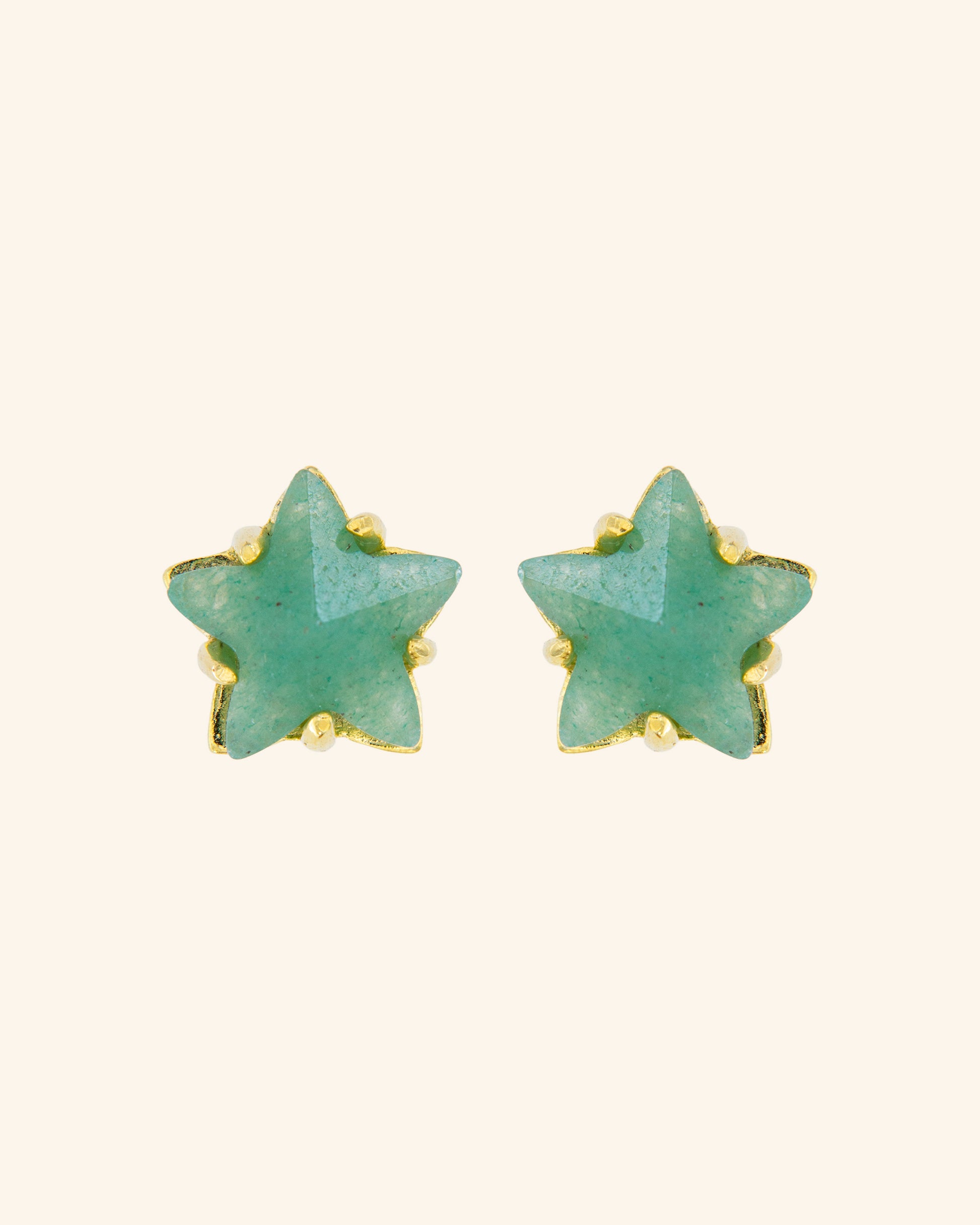 Pendientes en oro champán y piedras naturales talladas a mano en forma de estrella. Una pieza con diseño sencillo pero que aportará luz y color a todos tus looks, convirtiéndote en la estrella de todas tus ocasiones.