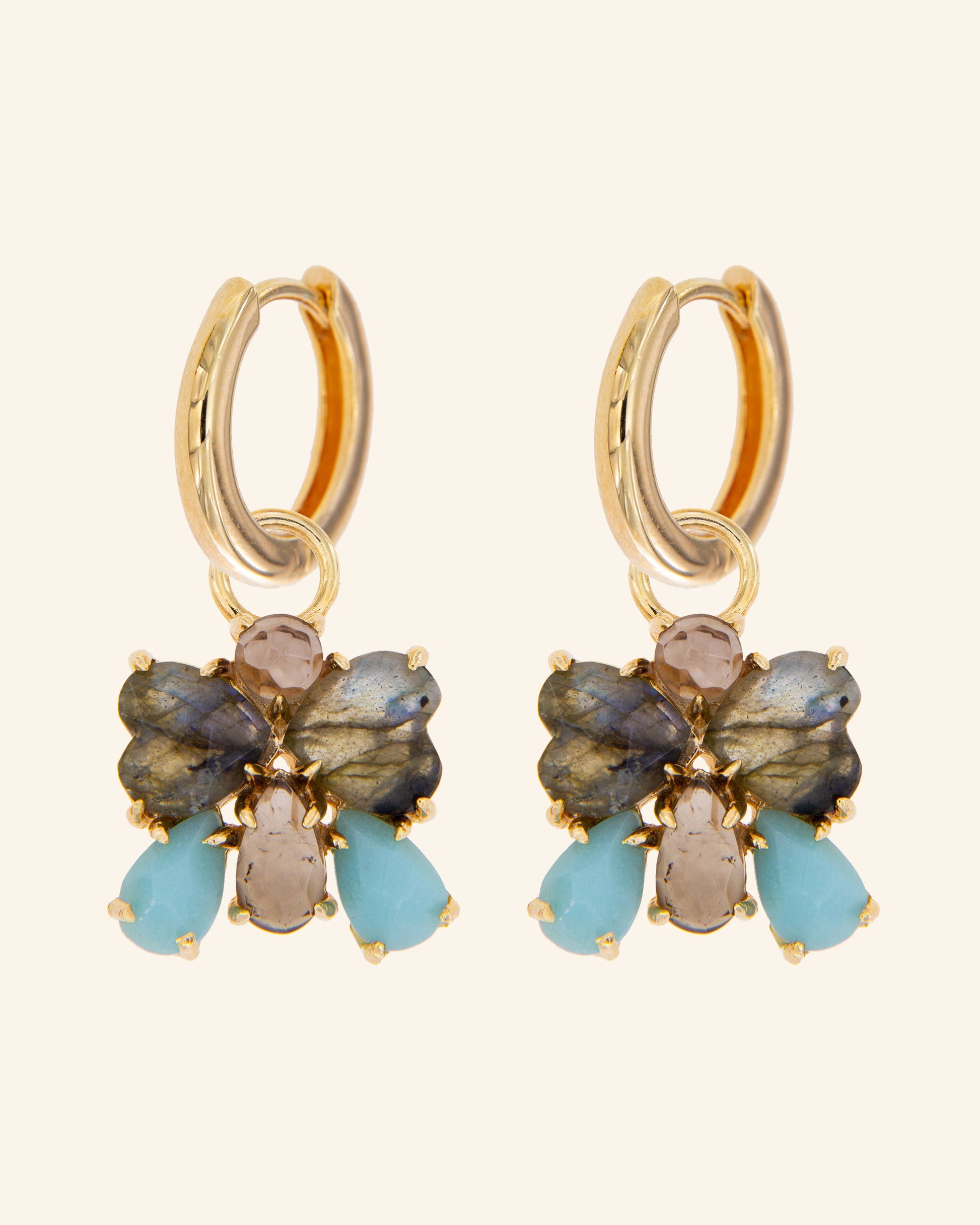 Pendientes Mariposa con labradorita, amazonita y cuarzo fumé